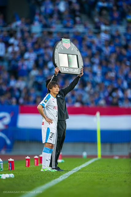 4月8日、それも昨季まで在籍した横浜とのアウェーマッチに、体調不良でベンチ外となった小林悠の代わりに初めてメンバー入りを果たした。