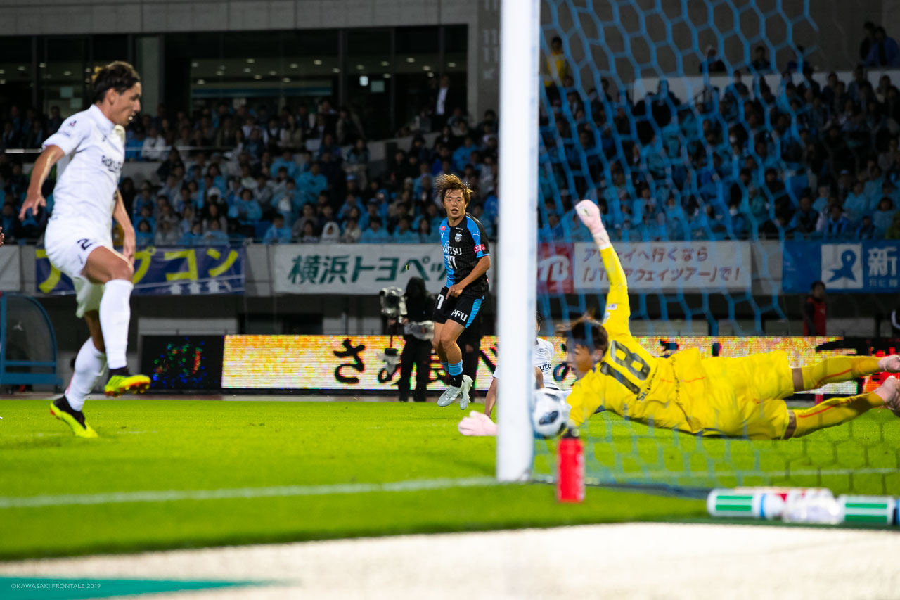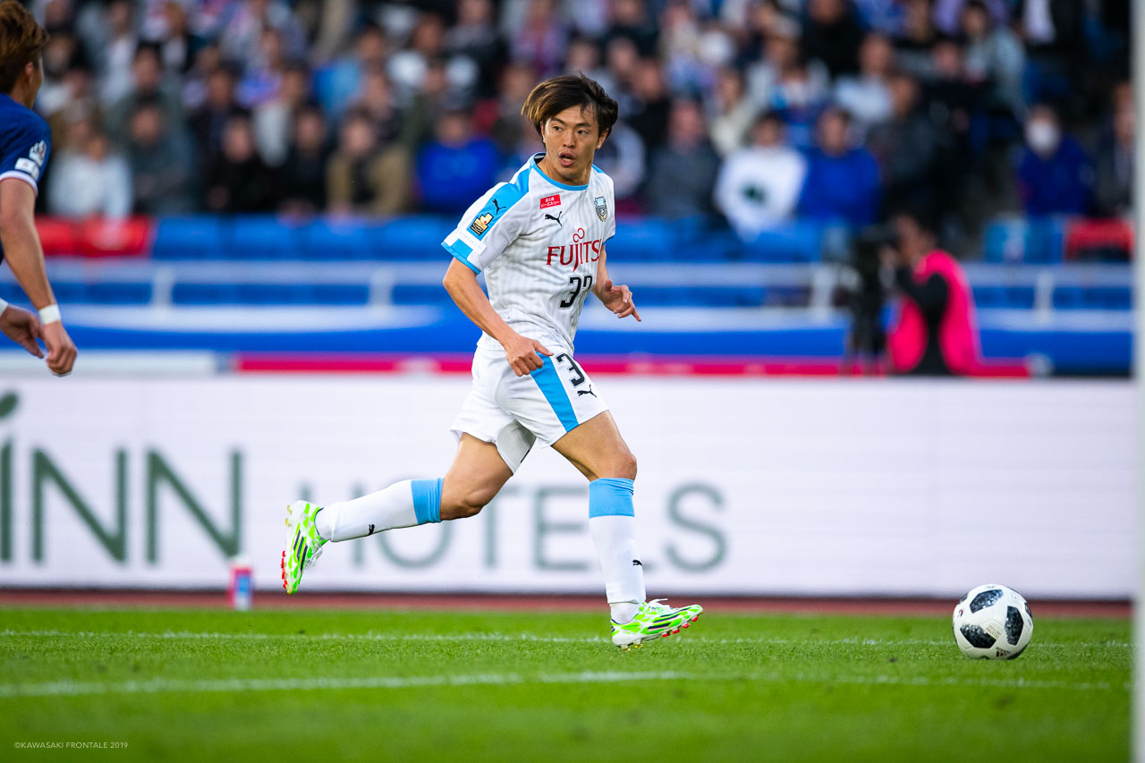 確かにサイドから仕掛けていくのは自分のプレー。だけど、それよりも中に入ってパス交換しながらスルーパスを受けるほうがより点を取ることができる。なぜって、中のほうがゴールに近いわけじゃないですか。相手が中に密集しても、崩し切ろうとするのがフロンターレのサッカー。そこに加わることが自分の中で凄く楽しくなってきている」