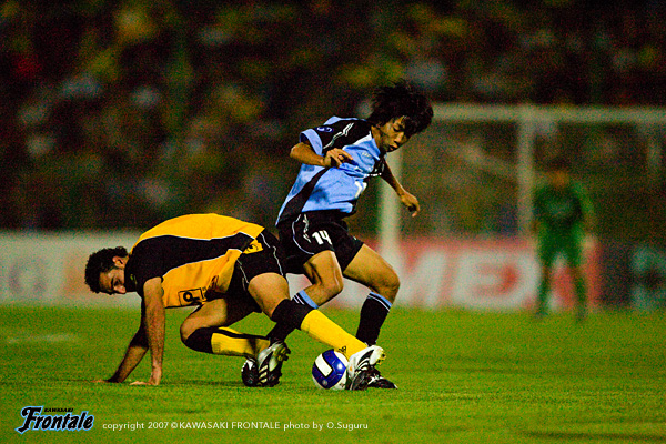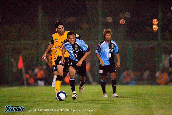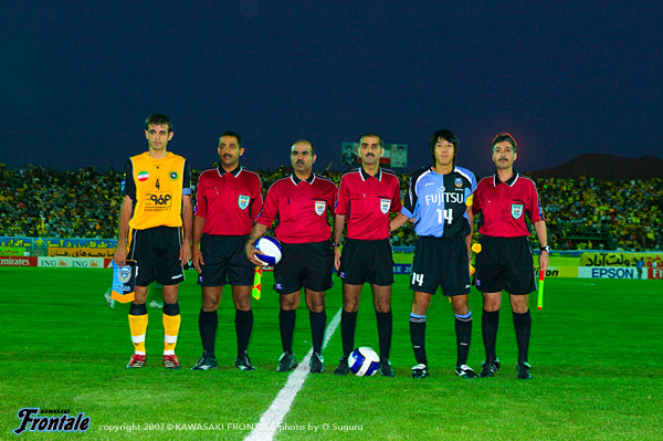 フロンターレのスターティングメンバーは、ジュニーニョとテセの2トップ、トップ下にマギヌン。右ワイドに森、左に村上、中村と谷口のダブルボランチ。 伊藤‐寺田‐箕輪の最終ライン、GK川島。立ち上がり2分、フロンターレのフリーキック。右サイドから中村がゴール前にボールを入れるが、ゴール前に合わず。3分、セパハンの速攻。早いリスタートから左サイドに展開されクロスが入るが、ここは箕輪がクリア。ピッチの横幅が若干広いため、ラインアウトが少なく、サイドの裏のスペースに長いボールを入れても追いつくシーンが目立つ。アウェイ独特の雰囲気のなか、セパハンがボールを回しながら攻撃。7分、セパハンの攻勢。一度はシュートブロックするものの、こぼれ球に詰めたザドマフムードがシュート。しかし、これはGK川島の正面。14分、セパハンのフリーキック。中央からザドマフームドが直接シュートを狙うが、GK川島のファインセーブでしのぐ。17分、セパハンのロングスローをゴール前で伊藤がクリア。ルーズボールも村上がクリア。さらに中盤で中村がインターセプト。そのままドリブルで持ち上がりスルーパス。走りこんだジュニーニョが右に流れながらミドルシュートを狙うが、ゴール上へと外れる。24分、フロンターレのビッグチャンス。中盤でボールを奪い、ジュニーニョが左サイドでドリブル突破。左足のクロスをテセがヘッドで叩きつけるが、惜しくもゴール左へと外れる。25分、フロンターレも反撃。寺田が最後尾からドリブルで持ち上がりバイタルエリアに侵入するが、後一歩というところでセパハンDFに潰される。29分には何本もパスをつないでセパハンディフェンスを揺さぶり、ジュニーニョが左サイドから中央へと切れ込みミドルシュート。しかし、これも枠をとらえきれず。ボールは回せるものの、ゴール前を固めるセパハンから得点することができない。33分にも寺田→中村→テセときれいにボールがつながるが、ミドルシュートはゴール上へと外れてしまう。37分、ロングスローをゴール前で寺田がクリア。その流れからカウンターへ。マギヌンが勝負を仕掛けるがフィニッシュまで持ち込めず。40分には中村のフリーキックをファーサイドのジュニーニョがヘッドで合わせるが、これもゴール左へ外れる。41分、左サイドの村上からボールを受けた谷口がドリブルで上がり、ペナルティエリアに入るもののセパハンディフェンスに潰される。43分、セパハンの反撃。4のアーリークロスにカリミがヘッドで合わせるが、GK川島の正面。ロスタイムにも中盤でボールカットした中村のスルーパスを受けたテセが左足で狙うも、シュートはわずかにゴール右へ外れる。フロンターレが決定機を何度も作るものの、ゴールを決めきることができず。前半を0-0で折り返した。