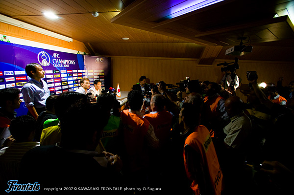 一番いいのは勝って帰えれること。その次にいいのが点を取って帰ること。そういう意味ではベストではなかったですね。ただ、アウェイで勝点1をとったことはよかった。内容的にも前半に3〜4回、5回くらいのチャンスがありましたし、後半にも1〜2度あった。そういう意味では、得点チャンスは相手よりも多かった。最初は後半の形で来るのかなと思っていた。2が後から入ってきて、守りを固めるときに3バックにしていた。それが立ち上がりになっていた。鹿島を視察しに来て、大分戦をBSで見たと聞いて、後半に勝負にきたんだなと。ストロングポイントは持ってますね。会見ではコメントできないと。次があるからコメントできないと逃げてきた。次の試合の対策はこれから日本に帰るまでに考えます。こうしたいという形はあります。次の試合が大事になる。レイソル戦を挟んでどう戦うのか。頭が痛いです。 照明は暗かったね。球も急に跳ねたりしていた。みんなでやってくれた。高地だったのもあるのかな。25分を過ぎて落ちましたね。最後まで点は取りたかったですね。途中でノーリスクという事は話しました。爆竹はJではあり得ないね。