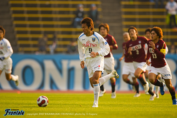 ハーフタイムのロッカールーム。「後半、先に点を取られたら危ない。ノーリスクで集中して試合に入ろう」と森。「もう一回、きっちり気を引き締めてゲームに入ろう」と川島。「相手が厳しくくるがプレーの正確性を高めていくこと」と関塚監督。後半、村上に変えて黒津が入り、そのまま左アウトサイドのポジションへ。46分、中村の右コーナーキックにジュニーニョがダイレクトで右足を合わせるが、シュートは枠に飛ばず。後半も落ち着いてボールを回しながら優勢に試合を進めるフロンターレ。52分、中村からボールを受けたジュニーニョがテセとのコンビネーションからゴール前に入るが、シュートはうまくフィットせずGK正面。神戸も反撃。59分、パスをつないで右サイドから崩しをかけ、近藤がペナルティーエリアに走り込みシュートを放つが、箕輪が体を入れてコースを消す。60分、フロンターレの攻撃。中村の強烈なミドルシュートから押し込み、ルーズボールを拾ってパスをつなぎ、左から右サイドへ展開。森が深い位置まで切れ込み折り返すが、このクロスはゴール前でブロックされる。64分、テセに変えてひさびさに我那覇がピッチへ入る。65分をすぎたあたりからは神戸に攻め手がなく、ゆったりした展開が続く。69分、中村からボールを受けた森が右サイドを単独突破。深い位置から折り返しを入れ、ニアに我那覇が詰めるが、シュートは惜しくもゴール右に外れる。73分、河村に変えて大橋が入りトップ下の位置へ。77分、中村のヒールパスを受けたジュニーニョから左サイドへと展開。黒津からのクロスをファーサイドで大橋が拾い、右サイドから中央へと切れ込み左足でミドルシュートを放つが、これはゴール上へと外れる。79分、神戸の攻撃。ロングパスを受けた近藤が裏のスペースに抜けようとするが、ここは森が戻ってケア。80分、神戸のコーナーキックを箕輪がクリア。その流れからカウンターへ。我那覇がドリブル、パスを受けたジュニーニョが右サイドから折り返し、このボールに我那覇みずから飛び込むが、わずかにタイミングが合わず。85分、神戸の攻撃。中盤でボールを奪われカウンターを浴びる。左サイドから中央へ切れ込んできた古賀にフリーでミドルシュートを打たれるが、これは枠をとらえきれずことなきを得る。86分、谷口からボールを受けたジュニーニョがスルーパス。ここに黒津が左サイドから走り込みシュートを放つが、神戸DFにブロックされる。さらにボールをつないで我那覇がミドルシュートを放つが、これは枠をとらえきれず。88分には森が右サイドから単独で持ち込み、深い位置から一気にゴールに接近するが、左足でのシュートはGKにセーブされる。89分、我那覇からボールを受けたジュニーニョが持ち込み、左サイドから折り返し。このボールを受けた大橋が狙いすましたミドルシュートを放つが、わずかにゴール上に外れる。ロスタイムには大橋のスルーパスを受けたジュニーニョが左サイドから折り返し、我那覇がダイレクトでボレーシュートを放つが、これも惜しくもゴール上に外れる。試合は3-0のままタイムアップ。