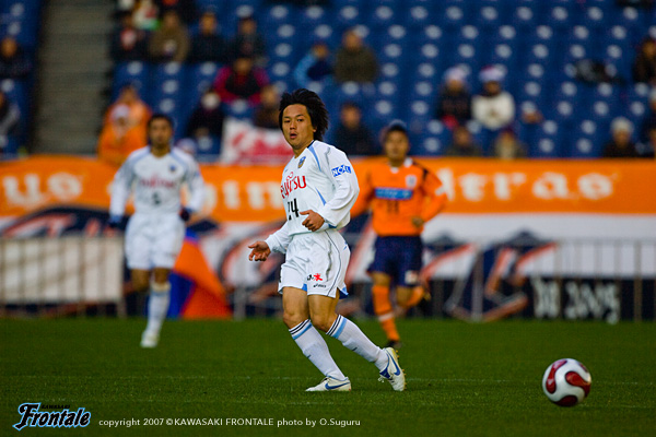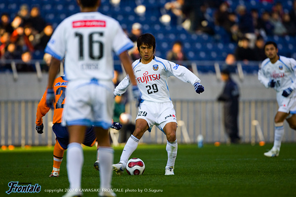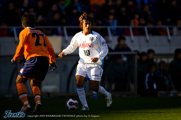 39分、ボールを回してスペースを探し、箕輪からアーリークロス。ここにテセが走り込み、裏に抜けてダイレクトで狙うが、惜しくもシュートはジャストミートせず。嫌な空気が漂い始めるが43分、フロンターレがようやく決定機をものにする。スローインから中村→森へと渡り、右サイドの森がクロスをゴール前へ。このボールはクリアされるが、こぼれ球を拾った大橋が冷静にコースを狙って見事なミドルシュートをゴール右隅に突き刺す。(1-0) ロスタイムには再び大橋のフリーキックにジュニーニョがファーサイドで頭で合わせるが、惜しくもGKの好セーブに防がれ追加点ならず。フィニッシュをゴールにつなげることができなかったフロンターレだが、大橋のゴールで先制。1-0で前半を折り返した。