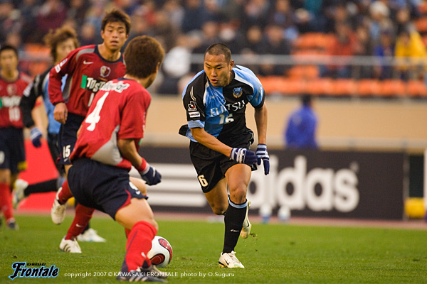 17分、鹿島の決定機。本山のダイレクトパスを受けた小笠原がゴール前に抜け出すが、いち早く河村が戻りカバーリング。18分、フロンターレの攻撃。森からパスを受けた中村が右サイドからクロス。ニアに飛び込んだテセがヘッドで狙うが、シュートはゴール右へと外れる。22分、中村の裏への浮かし球に反応した村上が左サイドからシュート性のクロスをゴール前へ。GK曽ヶ端がはじくが、こぼれ球に詰めることができず。序盤はフロンターレ、中盤以降は鹿島がペースを握って攻撃をかけるが、両チームともにボールを奪えばカウンターを狙うスリリングな展開。26分、鹿島のカウンター。田代がスルーパスに抜け出すが、シュートはゴール上へと外れる。30分、フロンターレの攻撃。右サイドに流れた河村からサイドチェンジ。左サイドの村上がボールを受け、中央へと切れ込みミドルシュートを放つが、ゴール上へと外れる。さらに33分、コーナーキックのこぼれ球を拾ったマギヌンがゴール前へアーリークロス。寺田がポストとなり後ろから走り込んだジュニーニョがシュートを放つが、鹿島DFにブロックされる。
