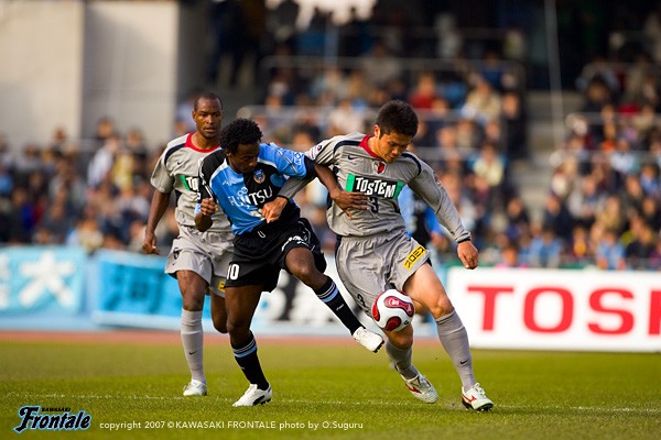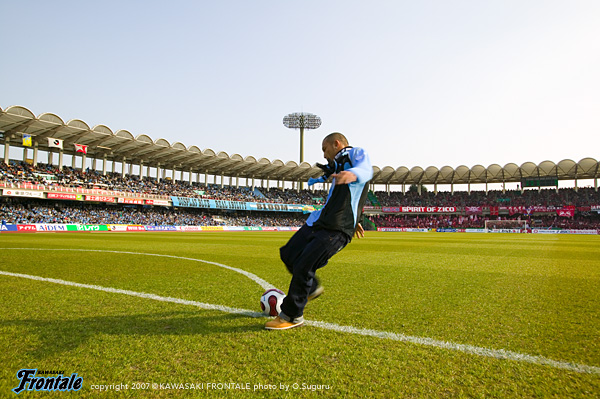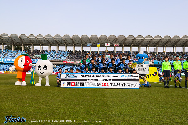 いよいよ開幕したフロンターレの2007シーズン。リーグ戦第1節の対戦相手は鹿島アントラーズ。今日の試合をものにして、翌週から続くACL予選、第2節のアウェイ神戸の連戦に向けて良い流れを作りたい。2万人の観客が詰めかけた等々力陸上競技場。15:00キックオフ。