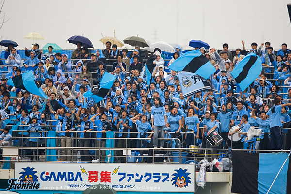 ハーフタイムのロッカールーム。「みんなの気持ちがしっかり出て攻撃的な自分たちのサッカーができている。しっかり続けていこう!」と関塚監督が選手たちを鼓舞。「お互いに助け合いながらプレーしていこう。勝つぞ!」とジュニーニョ。「最後まで気持ちを切らさずプレーしていこう」と気合を入れる村上。「あと45分、最後までやりきろう」と川島も声を上げる。G大阪は家長を投入して遠藤を一列下げ、攻撃的な布陣へチェンジ。後半立ち上がりの49分、フロンターレのカウンター。ジュニーニョが中盤で孤立しながらもボールキープ。マギヌンへとつないで、パスを受けた右サイドの森がクロス。ここに谷口が長い距離を走ってゴール前へと飛び込むが、惜しくもその目前でDFにクリアされる。後半もG大阪がボールを回して流動的に選手が動きながらゴールへと迫り、フロンターレが切れ味の鋭い速攻でチャンスを狙う展開に。54分、中村からボールを受けたマギヌンがスルーパス。ジュニーニョが抜け出しループシュートを放つが、ボールはゴールわずか上へと外れる。64分、我那覇に代えて黒津を投入。65分を過ぎたあたりからは、中盤でボールを奪い合うこう着状態が続く。フロンターレはジュニーニョと黒津をサイドバックのケアに回した3-4-3のような形でゴール前を固め、さらにコンパクトな布陣に。G大阪はボールは持てるものの、なかなかペナルティエリア内に侵入することができない。72分、遠藤が左サイドに流れてクロスをゴール前に入れるが、伊藤がバレーに体をつけてカバー。依然としてG大阪が押しこみ、フロンターレが守りながら速攻を狙う展開が続く。76分、カウンターから森のスルーパスを受けたジュニーニョが右サイドからクロス。しかし、このボールは相手GKがキャッチ。77分、自陣でボールを奪われて逆に速攻を浴びるが、伊藤が体を張ってカバーリング。82分、村上に代えて井川がピッチへ入り、そのまま左アウトサイドのポジションへ。迎えた83分、G大阪の右コーナーキック。一度はクリアするものの、ボールは再びキッカーの遠藤へ。その遠藤からのクロスに山口がダイビングヘッドで合わせ、同点に追いつかれてしまう。(2-2) このゴールで試合はさらにスリリングな展開の連続に。セカンドボールを拾って圧力をかけるG大阪。しのぐフロンターレディフェンス陣。88分、マギヌンに代わって久木野がJ初出場。試合はロスタイムへ突入。ピンチをしのいで攻撃に出るフロンターレ。リスタートの流れから、谷口とのワンツーを受けた中村が左足で強烈なミドルシュートを放つが、惜しくもゴール右へと外れる。最後にG大阪に猛攻を浴びるが、何とかしのいで2-2のままタイムアップ。 お互いの持ち味が出た激戦は勝点1を分け合う結末。リードしていただけに残念な結果ではあるが、敵地で強豪相手にドローという最低限の結果は残した。チームは1日間隔をおいて韓国へと移動。水曜日にACL一次予選、全南ドラゴンズとのアウェイゲームに臨む。