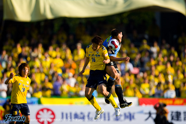 ハーフタイムのロッカールーム。「風が強い中でよくやっていたぞ。後半は風上に立つことができる。最後まで集中を切らさずに行こう!」と関塚監督が選手たちを鼓舞。後半立ち上がりの46分、自陣でルーズボールを拾って一気に前線へ。右に流れたジュニーニョがドリブルから折り返し。テセがおとりとなって後ろからマギヌンが飛び込むが、シュートはうまくミートせずに左へ外れる。48分、中央からのフリーキック。村上が流しテセが強烈なミドルシュート。しかしGKの好セーブに阻まれゴールならず。さらに49分、リスタートの流れから左サイド河村からクロスが上がり、このボールにジュニーニョがヘッドで合わせるが、惜しくもゴール左へ外れる。対する千葉も最後尾のストヤノフを中心にロングボールを入れ、セカンドボールを拾って押し込む。お互いに攻撃の形を作れるものの、ラストパスを阻まれる展開が続く。55分、ジュニーニョがロングボールを左サイドのスペースへ。ここに谷口が走り込み、ゴール前に折り返し。このボールを受けた村上がおもいきりシュートを放つが、これはカベに阻まれる。63分、右サイドで森がボールキープ。パスを受けたテセがボールキープから強引にシュートに持っていくが、わずかゴール右へと外れる。どちらに試合の流れが向くのか分からないまま迎えた66分、リスタートから森が右サイドで勝負を仕掛け、深い位置からクロス。このファーサイドのハイボールをテセが強引に頭で押し込み、先制点を奪う。(1-0) 67分、千葉も反撃。対角線上にロングボールを入れて裏のスペースへ。左サイドでボールを受けた山岸が切り返して至近距離からシュートを放つが、ここは森が懸命に足を出してブロック。その流れのコーナーキック、下村にフリーでヘディングシュートを打たれるが、ゴール上へと外れてことなきを得る。69分、ジュニーニョが単独で突破。バイタルエリアからグラウンダーのシュートを放つが、ゴール右へと外れる。70分にはハイボールをテセ競り勝ち、ジュニーニョが狭いスペースを抜けるが、あと一歩というところでクリアされる。先制点を奪ったことで俄然勢いが増したフロンターレ。71分、ルーズボールを拾った谷口が強烈なミドルシュート。しかし、GKの好セーブに阻まれゴールならず。さらにリスタートの流れからルーズボールを拾った森がダイレクトでミドルシュートを打つが、枠をとらえることはできず。早めに交代枠を使い切って反撃をかける千葉。75分、クリアミスを拾われて山岸にシュートを打たれるが、これはゴール上へと外れる。78分、フロンターレの決定的なチャンス。左サイドで村上がボールカット。ジュニーニョ、マギヌンとボールが渡り、左サイドのマギヌンのクロスをゴール前に走り込んだ村上がファーサイドでヘディングシュート。しかし、これは惜しくもポスト直撃。こぼれ球にジュニーニョが触るが、これもゴール上へと外れてしまう。すると81分、千葉・水野の左サイドからのフリーキックが、そのまま誰にも触らずゴールへと吸い込まれてしまう。(1-1) 最後はストヤノフが負傷してフロンターレは数的優位となり、谷口に変えて西山を入れて突き放しにかかるが、粘る千葉からゴールを奪えず。試合は1-1のままタイムアップ。