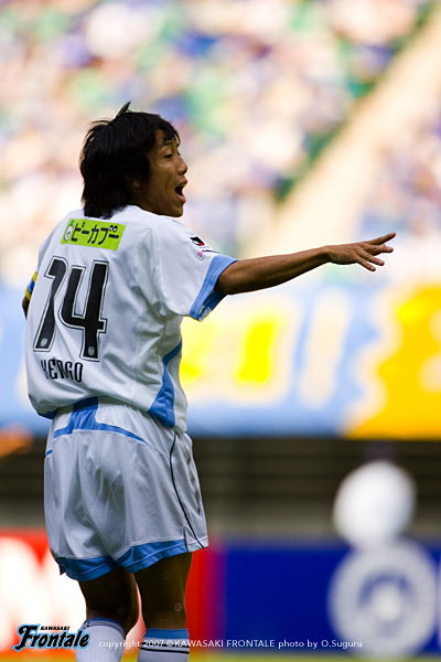 ハーフタイムのロッカールーム。「しっかり整理して、もう一度チャレンジしていこう」と伊藤。「あきらめない、あきらめない。こんなゲームは絶対負けられない!最後まで戦おう」とマギヌンも声をあげる。10人になったため、後半は我那覇と黒津の2トップ、中盤は右に中村、左にマギヌン、底に谷口を配した4-3-2の布陣へとチェンジ。45分、川島のロングキックに黒津が飛び込むが、相手DFに体を入れられてわずかに届かず。48分、大分の攻撃。最終ライン裏のスペースを狙われるが、GK川島が好判断で飛び出しキャッチ。しかし49分、数的不利の中盤を崩され、アウグストがドリブルで中央突破。箕輪と寺田で挟み込むが、ボールはゴール前でフリーになったセルジーニョへ。これを決められ、2点差とされてしまう。(0-2) 50分、左サイドからのフリーキックのチャンス。マギヌンのクロスに寺田が飛び込み頭で合わせるが、シュートはゴール右に外れる。53分、連続コーナーキックのチャンスを得るが、大分のタイトなディフェンスからゴールを奪うことができない。自分たちのリズムが作れず、苦しい戦いが続くフロンターレ。58分、中央から右サイドへと展開し、ペナルティエリア前でパスをつないで中村がスルーパスをゴール前へ。ここに黒津が走り込むが、わずかにタイミングが合わずオフサイドの判定。61分には自陣からカウンターをかけ、マギヌンがひとりで持ち込み強引にシュートを放つが、これはGK正面。人数が少ないながらも積極的にゴールに向かうが、逆にカウンターを浴びて危ない場面が続く。65分、我那覇がハイボールをヘッドで流し、ボールを受けたマギヌンが左サイドからシュートを放つが、うまくミートせずシュートはGK正面。66分、我那覇に代えてテセがピッチへ。69分、ボールをつないで中村が浮かし球をゴール前へ。ここにマギヌンが飛び込むがタイミングが合わず。71分には森が中央に切れ込み、パスを受けた黒津が左足でミドルシュートを放つが、ここもGKがキャッチ。ボールをつなぐことはできるものの、ゴール前を固められて決定的なチャンスを作ることができない焦れた展開が続く。75分、逆に大分に決定的なピンチを招くが、ラストパスを伊藤がゴール前ぎりぎりのところでクリア。76分にも決定的なスルーパスがゴール前に入るが、森が戻って足を出してピンチをしのぐ。79分、中央からのフリーキックのチャンスに中村が直接狙うが、シュートはゴール左へ外れる。80分にはテセが左サイドから中に切れ込み、強引にミドルシュート。しかし、ここはGKの好守にはばまれてしまう。82分、黒津に代えて久木野を投入。84分、その久木野がテセとコンビネーションプレーを見せるが、ラストパスは久木野に届かず。88分には中村の2列目からの飛び出しから、パスを受けたマギヌンが左足でシュート。しかし、これはDFをかすめてポストに当たりゴールならず。運にも見放される。試合は0-2のままタイムアップ。