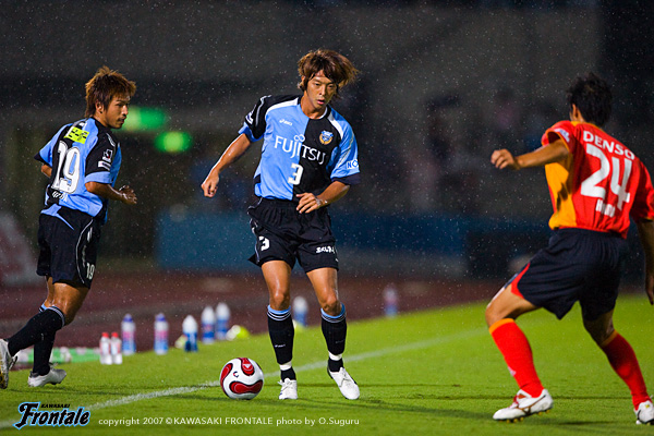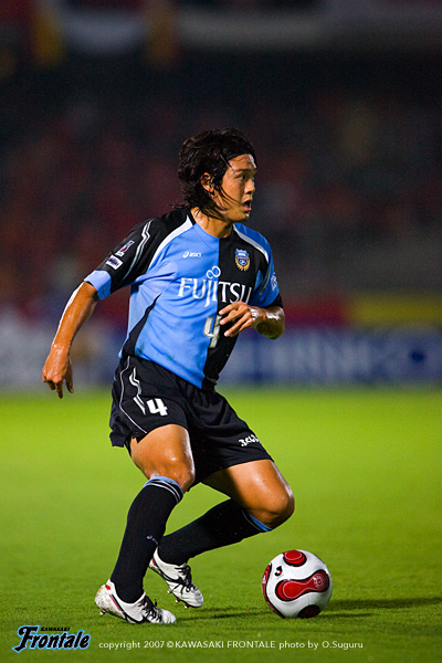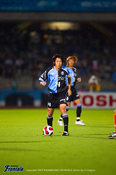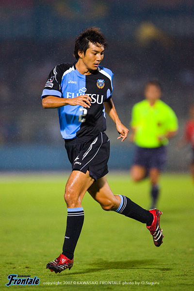 - フロンターレではストッパーとして初の出場だったが、それなりに自分のカラーは出せたと思う。入った時点では負けていたので、何とか追いつきたいと思っていた。結果、最低限追いついてよかった。本田という良い選手がああいう形でいなくなったが、一人少なくなることで名古屋が完全に引いてしまい、崩しにくくなってしまった面もあった。いくらチャンスを作っても入れてない。チームとして次への課題としたい。同点ゴールのシーンはパスを狙った、のではなく完全にシュート。チームとしてゴールへ向かう姿勢から生まれたゴールということ。個人的にはここ数試合良い形で入れているので、この調子を継続していきたい。