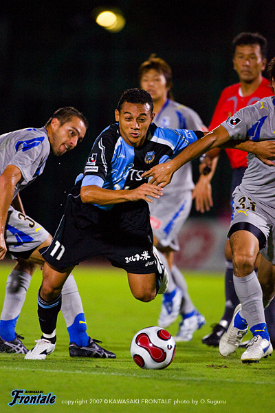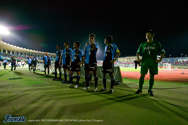 ハーフタイムのロッカールーム。「後半勝負だ。強い気持ちをもって最後まで戦っていこう!」と関塚監督がゲキを飛ばす。後半立ち上がりの46分、テセが右サイドからドリブルを仕掛け、DFを強引に抜き去り一気にゴール前まで入るが、シュートはGK下川の好セーブに阻まれる。するとその流れから大分がカウンターをしかける。一気にゴール前までボールを運ばれ高橋にフリーでシュートを打たれるが、GK川島の好セーブでピンチをしのぐ。48分、フロンターレのカウンター。ボールを受けたジュニーニョがドリブルをしかけ、DFを引きつけ左サイドへ展開。パスを受けたマギヌンがクロスを入れるが、ゴール前に走り込んだフランシスマールに合わず。50分、自陣でボールを奪い、速攻をしかける大分。しかしここはGK川島が飛び出しセーブ。こぼれ球も森がゴール前に戻りクリア。ピンチをしのぐ。大分にことごとくセカンドボールを拾われ、苦しい展開が続く。55分、フロンターレの反撃。中盤のミスパスを拾ったジュニーニョがドリブルをしかけ、DFをかわしミドルシュートを放つがGK下川にセーブされる。両チームともに攻撃の形は見せるものの、ディフェンス陣が踏ん張りゴール前ではね返していく。しかし66分、フロンターレの攻撃をしのいだ大分がカウンター一閃。左サイドへと展開され、高松のクロスを受けたエジミウソンに冷静にゴールを決められ、先制点を奪われてしまう。(0-1) 67分、テセに代わり我那覇がピッチへ。71分、ルーズボールを拾ったマギヌンがスルーパス。ここに走り込んだフランシスマールがGKと1対1の局面を作るが、シュートは惜しくもGK下川の飛び出しに防がれる。72分、我那覇のポストプレーからパスを受けた中村が左足でミドルシュートを放つが、GK下川が好セーブ。さらにコーナーキックのこぼれ球を拾った中村が再びミドルシュートを放つが、これもGK下川に阻まれてしまう。76分、谷口に代えて大橋がピッチへ。中村が中盤の底に入り、マギヌンと大橋が中盤上がり目のポジションに並ぶ。80分、大分陣内へと押し込み、ルーズボールに詰めたフランシスマールが左足で強烈なミドルシュートを放つが、GK下川にはじかれる。攻勢をかけるもののどうしてもゴールが奪えないフロンターレ。しかし86分、中村の裏のスペースへのロングボールに我那覇が走り込み、左サイドから折り返し。ゴール前でジュニーニョが粘り、こぼれたボールに詰めた大橋が落ち着いてシュートを決め、ようやく同点に追いつく。(1-1) 89分、森に代えて井川が右サイドへ。しかしロスタイム突入直後、自陣でボールを奪われ、高松が右サイドからクロス。このボールを鈴木が折り返し、ゴール前の西山にシュートを決められてしまう。(1-2) だが、まだ試合は終わらなかった。試合終了間際のワンプレー。大橋の連続コーナーキックから、ニアに合わせた井川が頭で押し込み、何とか同点に追いつく。(2-2)