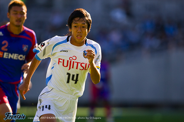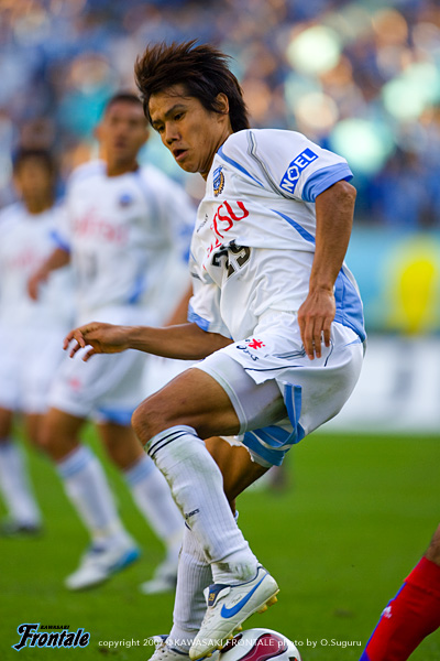 - 今日の試合は大事だった。集中していた。結果的に7点差がついたが、簡単な試合ではなかった。厳しい相手に対して、ただチャンスをしっかりとモノにしたということ。チャンスをいかしたからこその7点。僕も点を取ったが、一番大事なのはチームが勝つことであって、誰が取るか取らないかは重要ではない。僕も点を取れないときはアシストをするなど、チームの勝利に貢献したいと思ってプレーしている。次はナビスコカップの決勝戦。いつもと変わらず集中して試合に臨むことだけを考えている。フロンターレは少しずつ強いチームになってきている。ここで選手・スタッフ・サポーター、フロンターレに関わっているすべての人が1つになって戦い、優勝という結果を残すことで、さらにもう1つ上のチームに成長できる。一丸となって戦いたい。