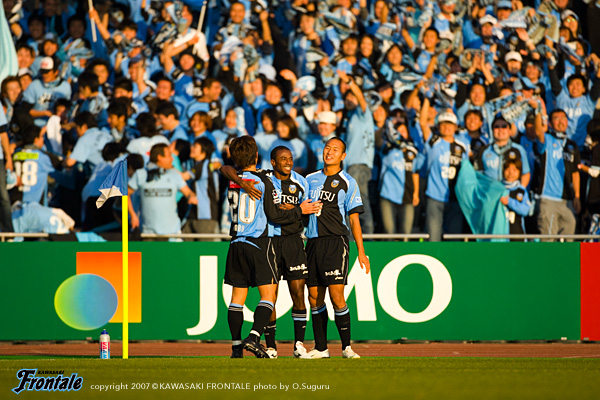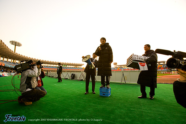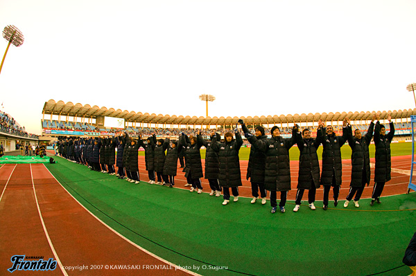 2007年の等々力ラストゲームは、フロンターレが力で押し切り快勝。和やかなムードのなか、ホーム最終戦セレモニーが行われた。残るはリーグ最終戦、そして天皇杯のみ。この1年間の集大成を残り試合に全力でぶつけてもらいたい。