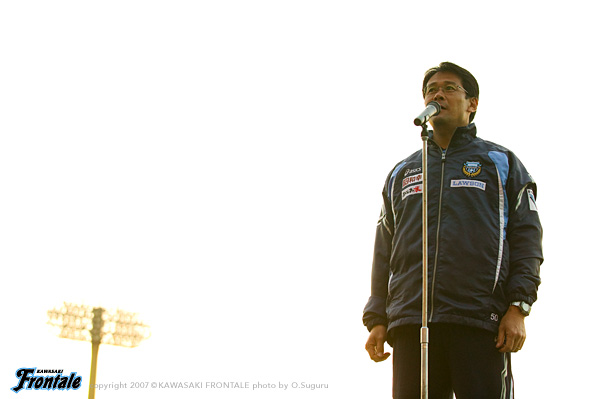 - 今季、等々力最後のゲーム、フロンターレのいい形のサッカーをして終わりたいと思っていた。立ち上がりはいい形でいった。前半厳しい時間帯もあったが、後半の立ち上がりもよかったと思うし、その後の試合運びはうまくいったと思う。中盤が守備で貢献してくれていた。ウェズレイにボールが入ったときは気をつけていた。