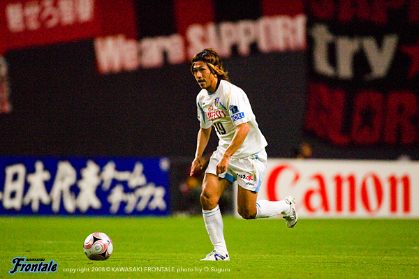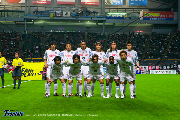 スターティングメンバーはジュニーニョが怪我から復帰。テセと2トップを組む。トップ下に大橋。中盤は中村、谷口のダブルボランチ、右に森、左に山岸。伊藤-寺田-井川の最終ライン。GK川島。ファーストシュートはフロンターレ。0分、川島からのロングキックをテセが競り合い、落としたボールに走り込んだ大橋がシュートを狙うが、これはうまくミートせず。1分、札幌の攻撃。右サイドでクライトンがボールキープ。クロスに石井が走り込みダイレクトで狙うが、シュートはゴール左に外れる。徐々にペースアップしはじめた7分、大橋のスルーパスに走り込んだテセが右サイドから折り返し。ここはジュニーニョにタイミングが合わないが、クリアボールを拾って再攻撃。ジュニーニョのダイレクトパスに走り込んだテセがDFに挟まれながらシュートを放ち、先制点を挙げる。(1-0) さらに攻撃をかけるフロンターレ。ボールを相手陣内へと運び、中村が意表を突いたロングシュートを放つが、わずかにゴール左に外れる。札幌もサイドバックを高い位置に上げて反撃。10分、右サイドを崩して砂川からアーリークロスが入るが、ここは誰も触れずラインを割る。11分、フロンターレの攻撃。森からパスを受けた中村がドリブルを仕掛けてミドルシュート。しかし、これは枠をとらえきれず。サイドで数的優位を作り出して圧力をかける札幌をかわしながら、しっかりボールを回していくフロンターレ。セットプレーからセカンドボールを拾われ押し込まれるが、ゴール前を固めてはね返していく。