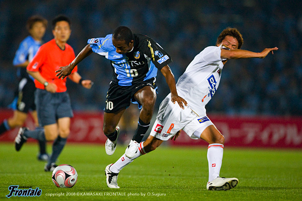 23分には右サイドからパスをつなぎ、セカンドボールも拾って押し込み、左サイドに流れたジュニーニョの折り返しにテセがヘッドで合わせるが、シュートはゴール左に外れる。25分、26分とロングボールでシンプルな攻撃を狙う大宮だが、伊藤-寺田-横山の最終ラインが対応。その後は小康状態が続くが、35分、左サイドの崩しからフロンターレが先制点を挙げる。山岸からパスを受けた大橋が左サイドからクロス。このボールをテセが胸トラップから何度も切り返し、右サイド深い位置から強引にシュート。これが相手DFに当たってゴールに吸いこまれる。(1-0) さらに攻撃をかけるフロンターレ。36分、カウンターから中村のパスにジュニーニョが裏のスペースに走り込むが、ここはGKが飛び出しクリア。38分には中村の見事なロングパスをペナルティエリア前で受けた山岸がシュートを狙うが、ゴール上へと外れてしまう。迎えた43分、一度はカウンターを止められるが、二次攻撃をかけルーズボールを拾ったジュニーニョがドリブルでDFとGKをかわし、ゴールへとボールを流し込み追加点を挙げる。(2-0) 攻勢をかけながら最後の場面で大宮ディフェンスに食い止められていたが、サイドからの崩しで先制点。さらにジュニーニョの個人技で2点目。いい時間帯で追加点を奪って試合の主導権を握り、2-0で前半を折り返した。