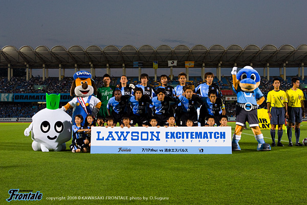 フロンターレのスターティングメンバーは、ジュニーニョと我那覇の2トップ、トップ下に大橋、中村と谷口のダブルボランチ、右ワイドに村上、左に山岸、伊藤-横山-井川の最終ライン、GK川島。前半立ち上がりから清水ペース。ロングボールを入れて裏を狙い、最終ラインが下がったところでサイドのスペースを狙ってくる清水。6分、中盤でパスカットされカウンターを狙われるが、スルーパスに井川がついて対応。ピンチをしのぐ。セカンドボールを拾って押し込む清水。10分、12分とフロンターレのコーナーキックのクリアボールからカウンターを狙われるが、ここはディフェンス陣が戻って対応。13分、清水の攻撃。ミスパスを拾って押し込まれ、シュートがDFに当たりコース変わるが、GK川島が反応。飛び出してパンチングで防ぐ。しかし15分、パスワークで左サイドを崩され、兵働のクロスに合わせた矢島に右足でシュートを決められ先制点を奪われてしまう。(0-1) 早い時間帯で先に失点してしまう苦しい展開。序盤から飛ばしてくる清水のディフェンスに捕まり、攻撃のリズムを作ることができないフロンターレ。19分、ジュニーニョが単独で左サイドを突破するが、クロスは相手GKにキャッチされる。21分、清水の攻撃。押し込まれて中盤が空いたところで兵働にロングシュートを打たれるが、ここはGK川島が落ち着いてキャッチ。フロンターレもヘディングで細かくつないでゴール前に迫るが、ラストパスがつながらず、逆にカウンターを浴びてしまう。