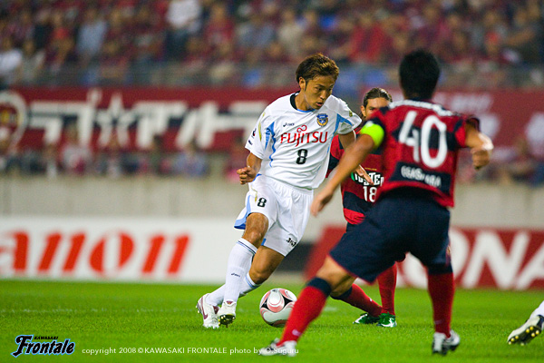 16分には小笠原を起点にカウンターを狙われるが、ヴィトールが素早く戻りナイスディフェンス。さらにダニーロに右サイドからでクロスを入れられ、マルシーニョにヘディングシュートを打たれるが、これはゴール右へ外れことなきを得る。素早いリスタート、タテに速い攻撃で圧力をかける鹿島。フロンターレがカウンターに出るところを中盤で奪い返される場面が目立つ。21分、鹿島に押し込まれてパスをつながれ、ダニーロにミドルシュートを打たれるが、ここは村上が体を張ってシュートブロック。厳しい時間帯が続く。27分、フロンターレの反撃。テセが粘ってボールをつないでカウンターへ。ジュニーニョがドリブルを仕掛けるが、中田にファールで止められる。29分、フロンターレの右コーナーキック。中村からのボールに谷口がヘッドで合わせるが、シュートはゴール上に外れる。31分にもパスをつないで中村が左サイドへ展開。走り込んだ山岸がクロスを入れるが、DFにクリアされる。34分、鹿島のカウンター。小笠原が中盤でボールを持つが、いち早く戻ったヴィトールがカバーに入る。36分には早いリスタートからフリーの内田に右サイドからクロスを入れられるが、ゴール前でディフェンス陣がクリア。ピンチをしのぐ。ダーティーではないが、球際でのプレーが激しい両チーム。終盤は激しいプレーの連続となるが、どちらもゴールを奪えず。チャンスの数は少ないものの、負けられないという両チームの意地がスタンドにも伝わってくる熱戦。前半から飛ばす鹿島がボールを持つ時間は長いものの、フロンターレのディフェンス陣が耐えながら要所をしのいでいる。前がかりになった鹿島の裏のスペースを突くことができるか。前半を0-0で折り返した。