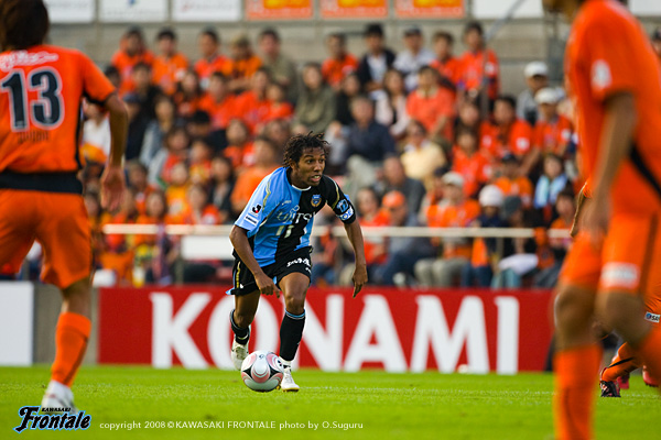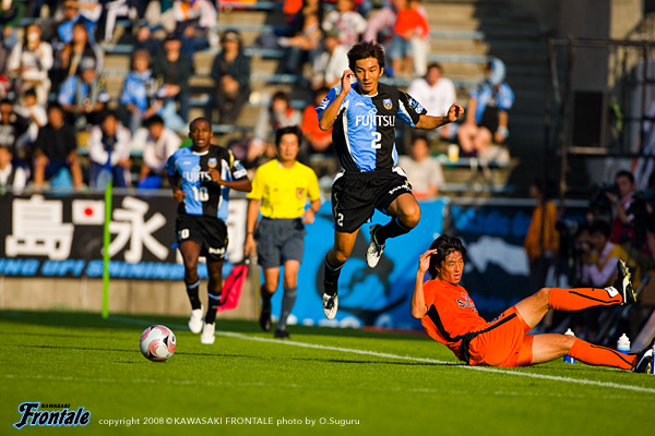 フロンターレのスターティングメンバーは、トップに我那覇、右にレナチーニョ、中央にジュニーニョ、左にヴィトール。中村と菊地のダブルボランチ。山岸-伊藤-井川-村上の最終ライン。GK川島。立ち上がりにしかけたのはフロンターレ。キックオフ数十秒、前線4人のコンビネーションから、ラストパスを受けたレナチーニョがミドルシュート。しかし、これは惜しくもゴール上に外れる。清水も積極的に攻撃をかける。3分、ショートコーナーからクロスを入れられそうになるが、ここはヴィトールが戻ってカバー。4分にもリスタートの流れから左サイドを上がってきた児玉にミドルシュートを打たれるが、ゴール上に外れる。8分には裏のスペースへのロングボールから岡崎にシュートを打たれるが、これはゴール上に外れる。直後にフロンターレも反撃。左サイドを抜けたジュニーニョがクロス。こぼれ球に反応した村上が右サイドから再びクロスを入れるが、惜しくもゴール前の我那覇にはタイミングが合わず。さらに最終ラインからボールをつないで押し込むものの、フィニッシュまで届かず。11分にもコーナーキックのセカンドボールを拾い、左サイドの山岸からクロス。ファーサイドで菊地がヘッドで合わせるが、シュートは枠には飛ばず。清水もサイドで数的優位を作りながら攻撃をかける。12分、エリア内に持ち込まれて山本真にループシュートを打たれるが、GK川島がポストに体を打ちつけながら気合いのセーブ。13分、フロンターレのカウンター。清水のコーナーキックを菊地がクリア。ルーズボールをジュニーニョが拾ってカウンターへ。レナチーニョがドリブルでしかけるが、あと一歩というところでDFに止められる。15分にはヴィトールのコーナーキックに菊地がヘッドで合わせるが、シュートはゴール上に外れる。