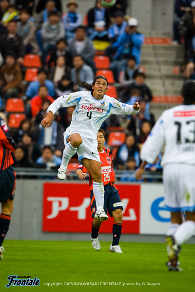その後はフロンターレもカウンターからチャンスを作るも、フィニッシュまでつながらない焦れた時間帯が続く。しかし迎えた35分、左サイドからのフリーキックのチャンス。中村のボールは大きくクリアされるが、こぼれてきた浮き球を森がダイレクトでミート。素晴らしいボレーシュートをゴール右隅に決めて同点に追いつく。(1-1) このゴールでようやく試合の流れはフロンターレへ。37分、レナチーニョがドリブルでゴール前に入り込み、さらにテセが強引に割って入るが、最後のところでDFに止められる。さらに38分、テセの頭での落としに走り込んだ谷口がシュートを狙うが、惜しくもミートできずGKがキャッチ。40分、大宮の攻撃。ロングボールを内田がキープ。シュートまで持ち込まれるが、ここは井川と伊藤でカバー。41分には藤本のアーリークロスに走り込んだラフリッチがゴール前に入り込むが、寺田が体をつけてカバーリング。直後にフロンターレのチャンス。GK川島のロングキックをテセが競り合い、こぼれた間を拾ったレナチーニョがミドルシュートを放つが、惜しくもゴール上に外れる。さらに43分、寺田のロングボールをテセが落とし、セカンドボールを拾ったジュニーニョがドリブルからシュート。しかし、これもゴール上に外れる。44分にはカウンターからレナチーニョがドリブル。左サイドでパスを受けた伊藤が折り返し。中央のテセがミドルシュートを狙うが、これも枠をとらえることができない。森のスーパーシュートで同点に追いついたものの、大宮の良さが目立つ試合展開。フロンターレの攻撃陣に対して素早い寄せで2人3人とマークにつき、なかなかチャンスを作らせてもらえない。1-1のイーブンで前半を折り返した。