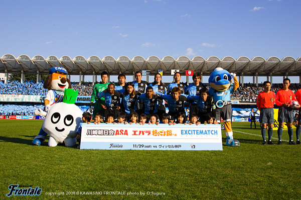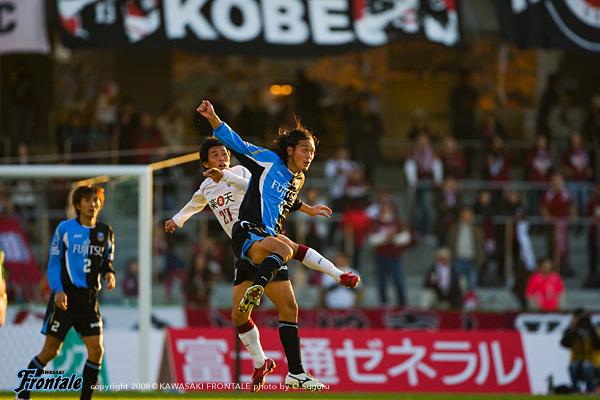 フロンターレのスターティングメンバーは、最前線にテセ、左にジュニーニョ、右にレナチーニョ、トップ下には怪我のヴィトールに代わり谷口が入り、中盤センターは中村と菊地のコンビ。伊藤-寺田-井川-森の最終ライン。GK川島。立ち上がり3分、いきなりゴールシーンが生まれる。ルーズボールを拾った谷口からボールを受けたジュニーニョが、DFを引きつけスルーパス。裏をとったテセがGKと1対1になり落ち着いてゴールを決め、フロンターレがファーストチャンスをものにして先制点を挙げる。(1-0) さらに攻撃をかけるフロンターレ。5分、中村の裏へのロングボールに走り込んだ谷口が左サイドか折り返し。しかし、このボールはゴール前に飛び込んだレナチーニョの前でDFにブロックされる。神戸も徐々に反撃。8分、中盤でルーズボールを拾われ、早いパスワークからレアンドロが右サイド深い位置からゴール前へ抜け出すが、シュートは枠をとらえきれずことなきを得る。さらに10分、井川のバックパスをレアンドロに詰められるが、GK川島が足を出してこぼれ球も伊藤がケア。14分には右サイドを崩されアーリークロスを入れられるが、ゴール前で森が戻りながら頭で触り、こぼれ球をGK川島がキャッチ。ピンチをしのぐ。15分、フロンターレの攻撃。中盤でのボールの奪い合いからラストパスを受けたジュニーニョが左足を振り抜くが、このミドルシュートはGK正面。ポジションチェンジしながら速い攻撃をかける神戸に対し、マークをつかみきれない時間帯が続く。18分、神戸の攻撃。左サイドからのクロスにレアンドロが飛び込むが、寺田が体を入れてクリア。さらにボールをつながれ最後は大久保にシュートを打たれるが、ここも寺田が足を出してブロック。