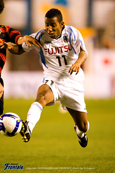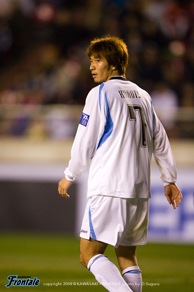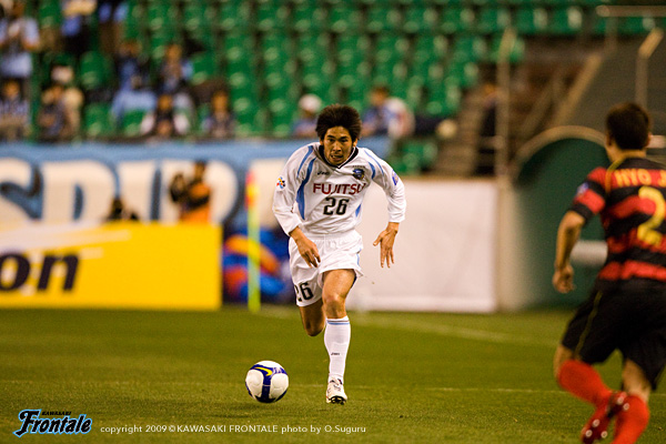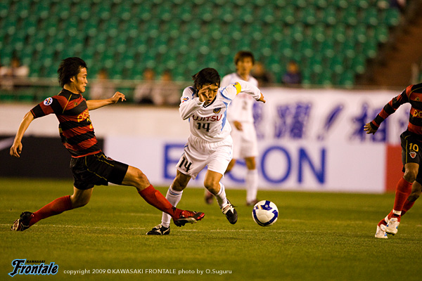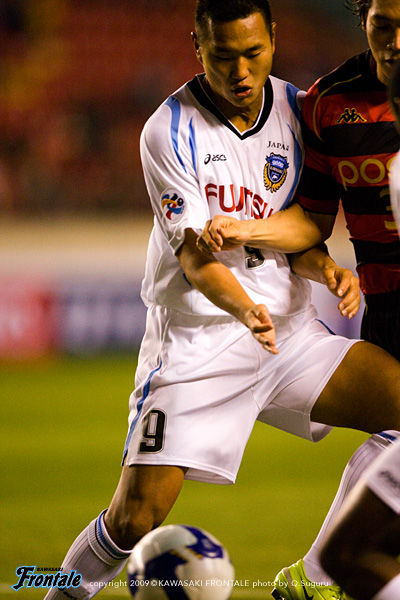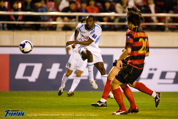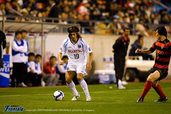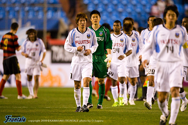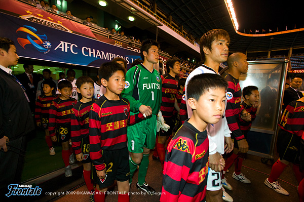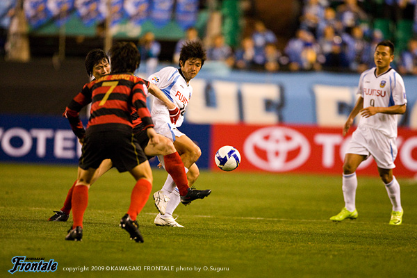 18分、浦項のペナルティエリア右からのフリーキック。ブラジリアにゴール前にボールを入れられるが、GK川島が好判断で飛び出しセーブ。さらに連続してシュートを打たれるが、ディフェンス陣が体を張ってブロック。21分、フロンターレの攻撃。相手陣内へ押し込み、横山からのボールをテセがポストプレー。右にはたいたボールに走り込んだジュニーニョがシュートを放つが、惜しくもGKにセーブされる。しかし迎えた22分、ヴィトールからの右コーナーキックを寺田がどんぴしゃりのタイミングで頭を合わせ、フロンターレが同点に追いつく。(1-1) 25分、浦項の攻撃。パスをつながれ押し込まれ、シン・ヒョンミンに強烈なミドルシュートを打たれるが、ここはGK川島がファインセーブ。さらに26分、ステボがヘディングですらし、裏に抜けたボールをデニウソンンがドリブル。しかし、ここは村上が絞って体を入れ、シュートはGK川島がキャッチ。31分、フロンターレの決定機。左サイドでジュニーニョからボールを受けたテセが粘ってクロス。ゴール前でフリーとなった谷口がダイレクトで左足を合わせるが、シュートは惜しくもゴール右に外れる。34分には、左サイドで村上からのパスをジュニーニョがダイレクトで裏のスペースへ。ここに中村が走り込むが、シュートはわずかにゴール上に外れる。40分、浦項の攻撃。ステボにヘディングで裏のスペースにボールを出されるが、GK川島が反応して飛び出しセーブ。危ない場面だった。互いに攻撃的なチームカラーを前面に押し出したオープンな展開。1-1で前半を折り返した。