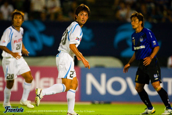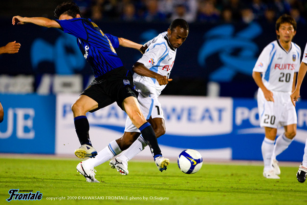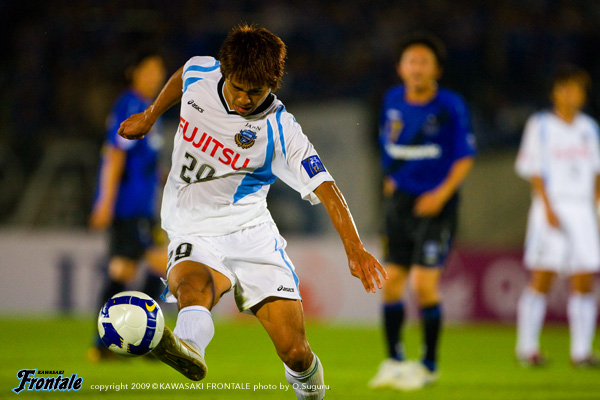 フロンターレのスターティングメンバーは、最前線にテセ、右にレナチーニョ、左にジュニーニョ。トップ下の位置に中村が入り、谷口と寺田で中盤センターを組む。村上-伊藤-井川-森の最終ライン、GK川島。立ち上がり3分、G大阪の攻撃。左サイドからの遠藤のフリーキックをニアで頭ですらされゴール前にボールが入るが、ルーズボールをGK川島がキャッチ。6分、今度はフロンターレのセットプレー。ペナルティエリア右前から中村がクロスを入れるが、このボールには誰も触れず。さらに7分、レナチーニョと森のコンビプレーで崩して押し込み、中村がスルーパス。ジュニーニョが裏のスペースに抜け出し右サイドから折り返しを入れるが、これはGKにキャッチされる。パスをつないで押し込むG大阪。9分、レアンドロに右サイドから突破を許すが、伊藤と谷口で挟み込みケア。11分、フロンターレの攻撃。寺田が中盤でボールカット。左サイド裏のスペースに出したボールにジュニーニョが走り込み折り返し。テセが後ろ向きでトラップして反転。左足でシュートを放つが、これはGK正面。16分、17分とフロンターレが連続してコーナーキックを得るが、得点にはつながらず。18分、G大阪の攻撃。中盤やや右の位置からのフリーキック。遠藤からのボールを山口にフリーでヘディングシュートを許すが、GK川島が好セーブ。ピンチをしのぐ。20分にもG大阪にパスをつながれ安田に左サイドからクロスを入れられるが、ゴール前でクリア。22分、フロンターレの攻撃。GK川島からのロングボールを中村が受け、レナチーニョが右サイドを突破。クロスを入れるが、これはDFにブロックされる。