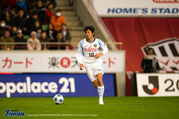 23分、フロンターレの攻撃。中盤でボールを奪い返し、中村が右サイドへロングパス。走り込んだレナチーニョがダイレクトで折り返しを入れるが、これは惜しくもゴール前のテセとはタイミングが合わず。その後は中盤のせめぎ合いが続く。29分、左サイドから中村を経由して右サイドへ。ボールを受けた山岸が中央に切れ込みミドルシュートを放つがブロックされる。32分、神戸の決定機。フロンターレがカウンターを狙うところを逆に返され、右サイドからクロスが入り吉田に頭で合わせられるが、このシュートはゴール上に外れてことなきを得る。36分、フロンターレの攻撃。中盤で寺田がボールカット。パスを受けたヴィトールが左サイドからアーリークロスを入れ、ファーサイドでジュニーニョが右足を合わせるが、このシュートは惜しくもGKにセーブされる。さらに37分から3連続でコーナーキックを得るがチャンスを生かせず。41分には谷口からのロングボールを受けたテセが粘りシュートを狙うが、これは威力なくGK正面。42分、神戸の攻撃をしのいで反撃。中村からボールを受けたヴィトールが右サイドからクロス。レナチーニョのオーバーヘッドは空振りに終わるが、こぼれ球を拾ったテセが左サイドからシュート。しかし、惜しくもGKの好セーブに阻まれる。お互いにチャンスを生かせないなか迎えたロスタイム。井川のインターセプトからカウンターへ。井川のスルーパスを受けたジュニーニョが左サイドからクロスを入れ、このボールをテセが頭で合わせてきれいなカウンターで先制点を挙げる。(1-0) お互いにチャンスを生かせず決定機は少ないものの、フロンターレがロスタイムのカウンターチャンスをものにして先制。フロンターレ優勢の流れで前半を折り返した。