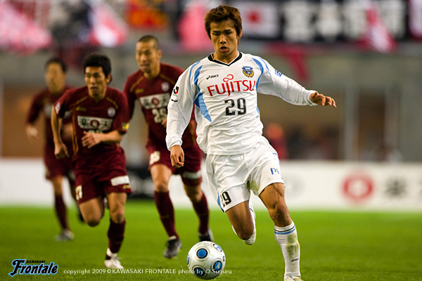 フロンターレのスターティングメンバーは、テセとジュニーニョが2トップ気味に並び、右にレナチーニョ、左にヴィトール、中村と谷口のダブルボランチ、伊藤-寺田-井川-山岸の最終ライン、GK川島。先にしかけたのはフロンターレ。1分、中村のロングボールに反応したレナチーニョが抜け出し右サイドからクロス。こぼれ球を拾ったジュニーニョがミドルシュートを狙うが、これはゴール上に外れる。4分、中村がボールキープから右サイドへ展開。山岸からボールを受けたジュニーニョが右サイドからクロスを入れるがクリアされる。7分には、中盤でボールを奪い返してカウンターへ。ヴィトールのスペースへのワンタッチパスにテセが走り込むが、ここはGKに飛び出されてシュートを打てず。さらに9分、中村のスルーパスは弾かれるが、リフレクションを中村みずから狙うが、ミドルシュートはDFにブロックされる。サイドで数的優位を作りながら攻撃を狙う神戸。10分、左サイドからボッティにクロスを入れられるが、GK川島がキャッチ。13分、フロンターレの攻撃。テセが粘って得たペナルティエリア右角、絶好の位置からのフリーキックのチャンス。ヴィトールが直接ゴールに向かうボールを入れ、GKが弾いたボールを拾い返してミドルシュートを狙うがゴール上に外れる。神戸もセットプレーからセカンドボールを拾って押し込むが、ディフェンス陣がゴール前ではね返す。18分にもオーバーラップしてきた石櫃にミドルシュートを打たれるが、GK川島がパンチング。その流れからフロンターレがカウンターを狙うが、レナチーニョのラストパスはGKにキャッチされる。試合はじょじょに速いペースになってくる。