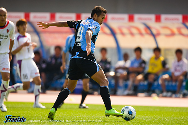 第8節京都戦。中2日でのタフな試合が続くが、粘り強く戦い抜かなければ上位チームの後ろ姿は見えてこない。連戦の消耗度を考え、関塚監督は今回おもいきってメンバーを数人入れ替えてきた。この策がどう出るか。晴天の等々力陸上競技場。13:03キックオフ。