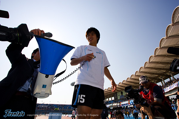 - 最後、失点をしなければしまった試合になったが。移籍後、初ゴール。正直、ホッとしている。前半からどこまでもつかわからないけど、とりあえず全力で頑張ろう、動いていこうと思っていた。ケガもあってトレーニングの中でしか長い時間やっていなかったので、初先発で身体が重い感じでボールコントロールも足についていなかった。緊張もあったのかもしれない。最後はあまりないが、両足つってしまった。初めてこれくらいの時間をやって、欲を言えばもう少し長くやりたかったが、交代は仕方ない。スタメンということで心がけたことはまずはジュニとヴィトールと連動してボールを動かせたらということ。もう少しくさびを受けたかったが、試合が始まってからはDFの裏を狙っていった。微妙に合わないなかでも相手が嫌がっているのはわかった。それによって中盤のスペースもできていたのでケンゴさんとも話して続けていけばヴィトールや田坂もいきるだろうと裏への動きを続けた。ゴールシーンはあの時間帯はカウンターでチャンスがあったし、いけそうだと感じていた。ジュニーニョが左サイドで1対1になれば絶対に突破する、良いボールが入ってくるのがわかっていたので信じて走っていた。最後は流し込むだけだった。ジュニーニョのおかげ。ジュニからはオメデトウと言われたのでオブリガードと言った。足は思ったよりいい感じ。ここからまた痛みが戻らないようにしたい。後はコンディションをよくしていければと思う。とりあえず1点取れてリラックスできたし、ホッとしたが、またすぐ試合がある。力のあるメンバーが控えている。明日から切り替えて出番が来たら次も良いプレーができるように、チームの順位を上げられるように、目の前のことだけを考えてやっていきたい。