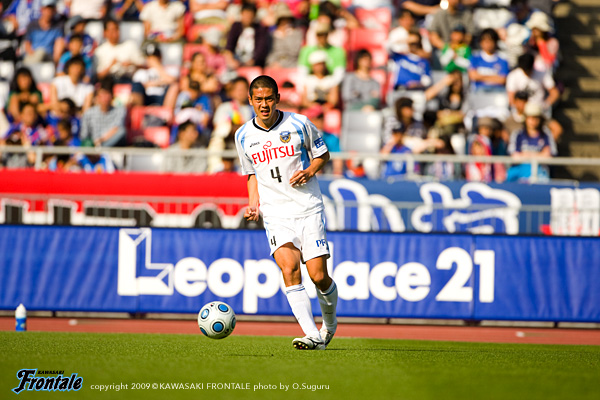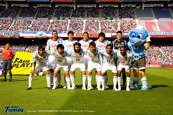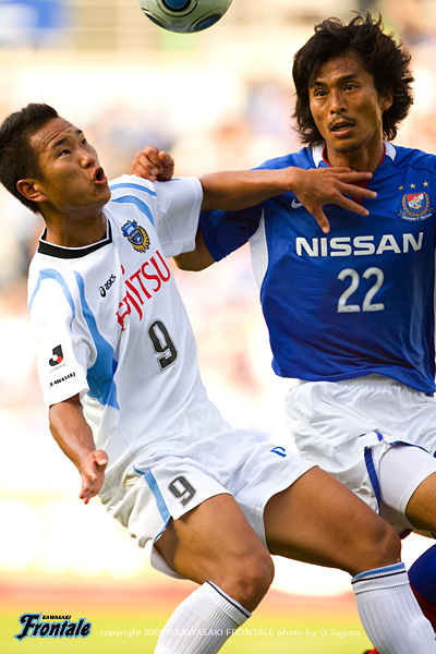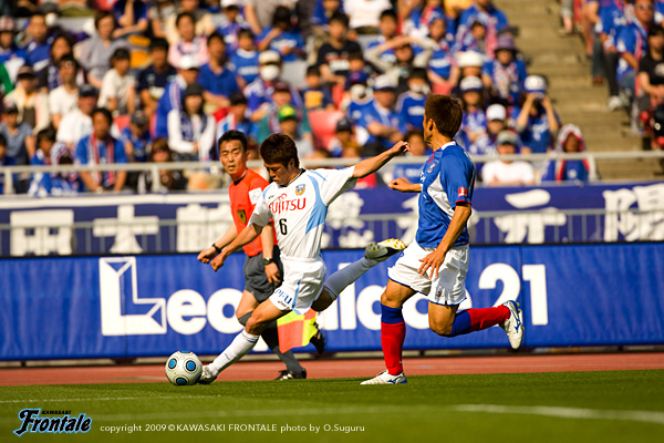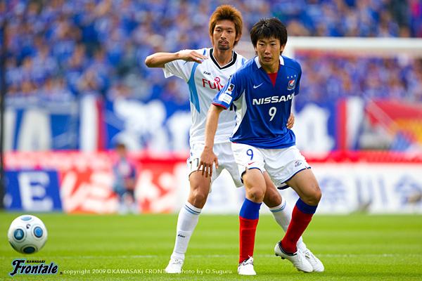 フロンターレのスターティングメンバーはジュニーニョと矢島の2トップ、中盤右にヴィトール田坂、左にヴィトール、中村と横山のダブルボランチ、村上-寺田-井川-森の最終ライン、GK川島。立ち上がり数十秒、リスタートの流れからジュニーニョが左サイドからゴールに向かうボールを入れるが、これは相手GKにセーブされる。横浜FMはシンプルにロングボールで裏のスペースを狙ってくるが、最終ラインで落ち着いて対応。4分、フロンターレの攻撃。中村の裏へのロングボールに矢島が追いつき、村上が左サイドからしかけてセカンドボールに中村が合わせるが、このミドルシュートはうまくミートせず。6分、横浜FMの攻撃。セカンドボールを拾われ右サイドから田中にアーリークロスを入れられるが、ゴール前で寺田がヘッドでクリア。10分、フロンターレの攻撃。村上の裏へのボールに抜け出た田坂が左サイドからクロスを狙うが、惜しくもDFにクリアされる。11分、横浜FMの攻撃。左サイドから切れ込んできた小宮山にミドルシュートを打たれるが、GK川島が冷静にキャッチ。12分には中盤から裏に出たボールに渡邉が抜け出すが、寺田がついてコースを消し、シュートは枠を外れる。16分、フロンターレの攻撃。ヴィトールからパスを受けたジュニーニョが左サイドを突破。クロスに矢島が飛び込むが、わずかにタイミングが合わず。さらにヴィトールのコーナーキックをファーサイドで寺田が折り返し、ゴール前でジュニーニョがヘッドで合わせるが、シュートは枠をとらえきれず。18分、寺田のロングフィードに矢島が走り込むが、これはオフサイドの判定。19分、今度は逆に松田に裏のスペースへロングボールを入れられるが、GK川島が飛び出しがっちりキャッチ。直後のプレー、相手陣内でボールを奪い返し、中村からパスを受けた田坂が流し、ヴィトールがミドルシュートを狙うが枠をとらえきれず。