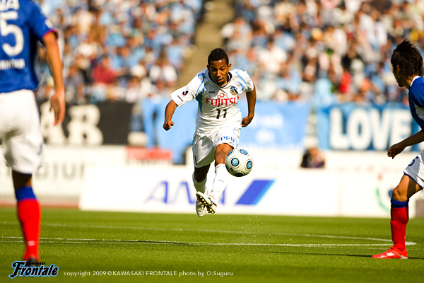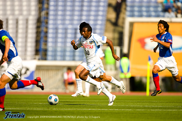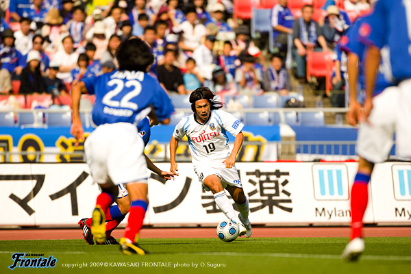 ハーフタイムのロッカールーム。「落ち着いてリスク管理をしながら、自分たちのサッカーをしていこう!出足で負けるな」と関塚監督。「まだ終わってないぞ。しっかりとひっくりかえしていこう!」と中村。「強く強く、みんなでいこう!」と川島も声をかける。後半頭からメンバーチェンジ。矢島に代えてテセ、田坂に代えてレナチーニョがピッチへ。テセ、ジュニーニョ、レナチーニョの3トップ気味の布陣にシフト。後半立ち上がり45分、フロンターレの攻撃。相手陣内でボールを奪い、ヴィトールがスルーパス。抜け出したテセが左サイドから折り返しレナチーニョが左足で合わせるが、シュートは惜しくもゴール左に外れる。47分にもゴール前に圧力をかけてくる横浜FMの攻勢をしのいで反撃。ロングボールを受けたレナチーニョがドリブルをしかけてそのままシュートに持ち込むが、これは枠には飛ばず。さらに49分、ヴィトールの左サイドからのフリーキックをテセがヘッドで合わせるが、シュートはゴール上に外れる。50分、横浜FMの攻撃。左サイドの崩しからクロスが入り渡邉にフリーでシュートを打たれるが、GK川島が好セーブ。決定機を止める。52分、フロンターレの攻撃。横浜FMのセットプレーをしのぎ、ボールをつないで最後は横山がミドルシュートを狙うが、ゴール右に外れる。展開が遅くなると横浜FMの守備網に捕まり、逆にカウンターを受けてしまう。58分、速攻から中村のロングボールにジュニーニョが反応。左サイド裏のスペースに抜けるが、DF中澤に止められる。60分にはレナチーニョからボールを受けたジュニーニョが右サイドから折り返し。ゴール前でテセがトラップするが、惜しくもシュートは打てず。さらにレナチーニョとジュニーニョが強引に中央突破。テセがフリーで抜け出すが、惜しくもGKにブロックされる。