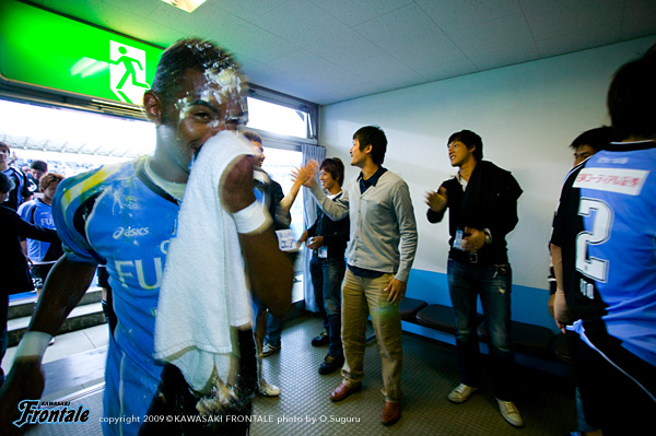 ハーフタイムのロッカールーム。「この試合をやり抜くことだぞ。最後まで自分たちを信じてやっていこう!」と関塚監督。「勝つぞ!ホームだぞ。45分しっかりやっていこう!」と中村も声をかける。45分、磐田の攻撃。ゴール前にイ・グノが入り込んでくるが、ディフェンス陣が挟み込んで突破を止める。47分、ジュニーニョが左サイドを抜けてクロス。しかし、ゴール前のレナチーニョにはタイミングが合わず。48分、磐田の攻撃。ジウシーニョにボールキープからシュートに持ち込まれるが、ここは井川がシュートをブロック。51分、フロンターレの攻撃。ジュニーニョのスルーパスに走り込んだ伊藤が左サイドから中に切れ込みミドルシュートを放つが、これはDFにブロックされる。54分には、中盤でジュニーニョがボール奪い、そのままドリブル。右サイドからクロスを入れるがゴール前には合わず。中盤でボールが往来する落ち着かない展開が続く。59分、ボールがうまくつながらず磐田に逆襲を受けるが、ディフェンス陣が落ち着いて対応。62分、フロンターレの攻撃。右サイドでレナチーニョとのコンビプレーから森がクロスを入れるが、これはGKにキャッチされる。さらに64分、リスタートの流れから伊藤が左サイドからクロス。ファーサイドで山岸が頭で落とし、ゴール前にテセが入り込むが、シュートは惜しくもブロックされる。66分には、中村のコーナーキックをテセが頭で合わせ、ゴール前の混戦のなかからこぼれ球をテセが狙うが、シュートはGKにキャッチされる。直後のプレー、磐田にカウンターを浴びるが、ラストパスはオフサイド。70分、フロンターレの攻撃。左サイドでレナチーニョがボールキープ。パスを受けた伊藤のアーリークロスに谷口が合わせるが、シュートは惜しくも枠をとらえきれず。71分、磐田の攻撃。裏のスペースにイ・グノが抜け出すが、ディフェンス陣で挟み込みGK川島が飛び出しキャッチ。