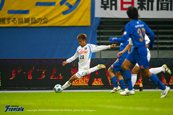 73分、フロンターレの攻撃。レナチーニョの右コーナーキックのクリアボールを拾い村上がミドルシュートを放つが、DFに当たって外れる。さらに連続してコーナーキックのチャンスを得るが、ゴール前で大分ディフェンスにはね返される。75分、フロンターレの攻撃。相手陣内でボールを奪い返すものの、ラストパスはつながらず。76分、テセに代えて矢島がピッチへ。村上のスルーパスにジュニーニョが抜け出し、左サイドから折り返し。しかし、ゴール前の矢島には合わず。77分にも右サイドの森からパスをつないで中村がラストパスを狙うが、大分ディフェンスに止められる。78分、大分の攻撃。中盤でボールを奪われカウンターを浴び、スルーパスに抜け出したエジミウソンにフリーでループ気味のシュートを打たれるが、このボールはポストに当たって外れる。80分、フロンターレの攻撃。大分のコーナーキックのクリアボールを拾い、中村が前線にロングパス。矢島が走り込むがDFに競られて止められる。83分には、左サイドをジュニーニョがドリブル。折り返しを入れるが、ゴール前にレナチーニョには届かず。さらにセカンドボールを拾って押し込むものの、大分ディフェンスにクロスをことごとくはね返される。84分、右サイドの森がドリブル突破からクロス。ボールを受けた矢島は惜しくもシュートに持ち込めず。86分にも中村がフリーキックをゴール前に入れ混戦となるが、シュートは打たせてもらえず。89分には、スローインからジュニーニョが右サイドからペナルティーエリア内に走り込みクロス。矢島がヘッドで合わせるが、このシュートは惜しくもゴール上に外れる。ロスタイム、GK川島のロングキックから一気にゴール前へ。ボールを拾った田坂がシュートを狙うが枠をとらえきれず。さらにセカンドボールを拾って右サイドのジュニーニョがクロス。レナチーニョが飛び込むが、ヘディングシュートはゴール上に外れる。試合は0-1でタイムアップ。