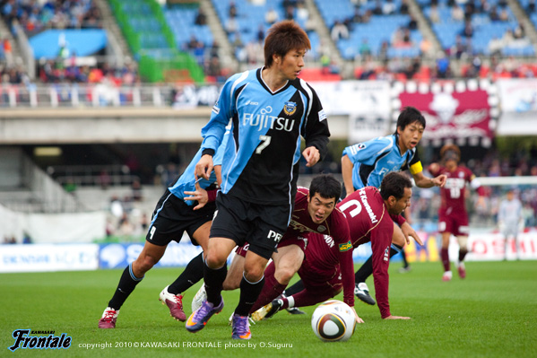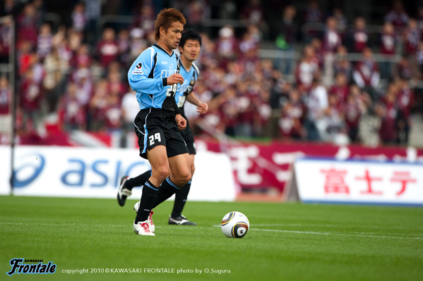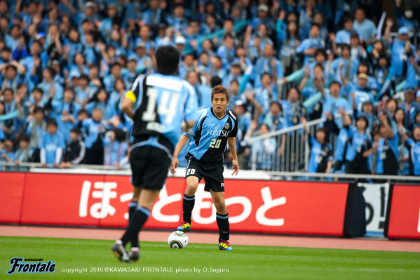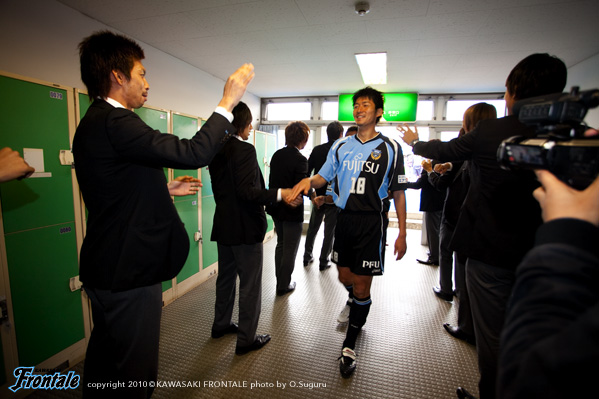 ハーフタイムのロッカールーム。「1点で守りに入るんじゃない。リスク管理をしながら、さらに点を奪いにいくんだぞ!」と高畠監督。「しっかり点を取って勝つぞ!」と中村も声をかける。後半立ち上がり45分、フロンターレの攻撃。センターの稲本から右サイドへ展開。森、黒津、テセとつながり、走り込んできた中村がミドルシュートを狙うが、これは大きく外れる。迎えた48分、中盤で中村が競り合い、こぼれ球をテセが粘ってラストパス。このボールを黒津が足を伸ばしてシュートを決め、いい時間帯で追加点を挙げる。(2-0) その後もお互いに裏のスペースを狙う展開が続く。58分、フロンターレの攻撃、中村からパスを受けたテセが右サイドから折り返し。レナチーニョがスルーし、背後に走り込んだ田坂が左足を合わせるが、このシュートは惜しくもゴール右に外れる。59分、パスをつないで左サイドのレナチーニョから折り返し。ファーサイドで中村がボールを受けるが、フィニッシュには持ち込めず。さらに中村の右コーナーキックをテセがヘッドで合わせるが、このシュートは枠をとらえきれず。60分、中盤で田坂、レナチーニョ、テセとボールがつながり、テセがシュートを放つが、惜しくもGKのセーブに阻まれる。63分、神戸のカウンター。右サイドからクロスを入れられるが、大久保のヘッドは枠を外れる。さらに65分、ボールをつながれ左サイドのポポからクロスが入るが、GK川島がキャッチ。直後に神戸のミスを拾ってレナチーニョがミドルシュートを放つが、わずかにゴール右に外れる。神戸も反撃を見せるが、粘り強くしのぎながらカウンターチャンスを狙う。