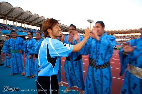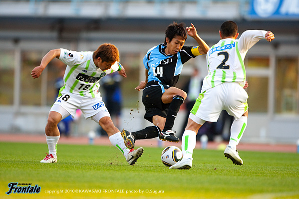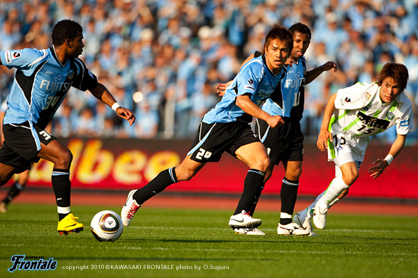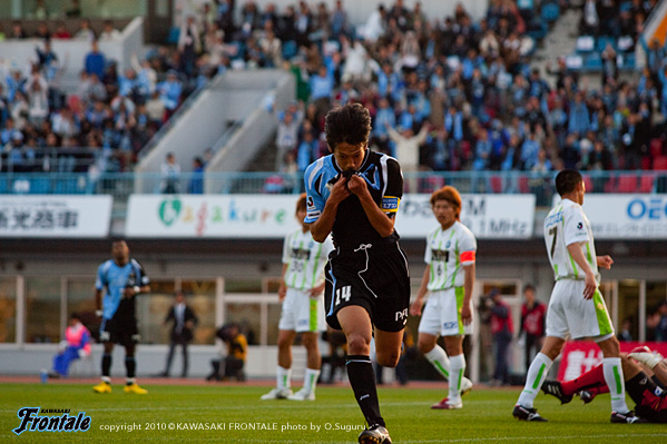 - 前半は自分たちのミスというか、自滅という感じで失点してしまった。ハーフタイムに話し合って慌てずにやっていこうと後半に入って、ヘナの同点ゴールで落ち着いた。相手に退場者が出てからは自分たちのペースで試合を進めることができたと思う。ただ個人的にはミスが多かったし、納得していない。中国遠征帰りで体のコンディションが良くないのはしょうがない。だから勝ちたいという気持ちを出していこうとみんなで話していた。コミがフロンターレでの初ゴールで勝ち越してくれた。チームにとってもコミにとってもよかった。自分のゴールはついでみたいなもの。ただ前半からチャンスがあったので、もう1点たたみかけようとしていた。北京戦でフル出場して、今回は今年初めての中2日での連戦。このペースに慣れてくればコンディションも上がってくると思う。個人的にはまだ開幕したばかりという感じなので、チームの流れに乗るのに必死。周りに助けてもらいながらやっている。気持ちと体をリンクさせてやっている段階。ひとつひとつ積み重ねながらどんどん上に向かっていきたい。