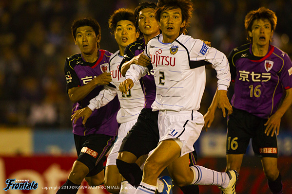 ハーフタイムのロッカールーム。「焦らずにしっかりボーを動かして、しっかり勝ち切って勝点3をもって帰るぞ!」と高畠監督。45分、京都の攻撃。コーナーキックから混戦となりボールがこぼれるが、ここはGK相澤がキャッチ。46分、直後にフロンターレが反撃。ロングボールのこぼれ球を拾った小宮山が左サイドからクロス。ジュニーニョがダイレクトで左足を合わせるが、ボレーシュートは惜しくも枠に飛ばず。49分、中村の縦パスを受けたジュニーニョがドリブル突破。右サイドからシュートを放つが、GKに止められる。その後は京都にロングボールからセカンドボールも拾われ押し込まれる時間帯が続く。53分、ディエゴに裏を取られ決定的な場面を作られるが、安藤のシュートは枠を外れことなきを得る。54分にもディエゴに左サイドからシュートを打たれるが、ここも枠を外れる。55分、フロンターレの攻撃。ペナルティーエリア左からのフリーキック。田坂のクロスはゴール前でクリアされ、セカンドボールを拾ってパスをつなぐがフィニッシュには至らず。56分、田坂に代えて黒津が入り、そのまま右サイドハーフへ。57分、京都の攻撃。フリーキックの流れからこぼれ球を拾った安藤にミドルシュートを打たれるが、GK相澤がキャッチ。58分、フロンターレの攻撃。中央突破からジュニーニョがミドルシュートを放つが、枠を外れる。58分、京都の攻撃。ロングボールから押し込まれて一気にピンチを招くが、GK相澤が果敢に飛び出し京都のファールを誘う。66分、フロンターレの攻撃。右サイドのジュニのクロスにゴール前の黒津が合わせるが、惜しくもGKに止められる。67分、ジュニーニョがドリブルからスルーパス。右サイドの森が追いつきクロスを入れるが、フィニッシュには持ち込めず。