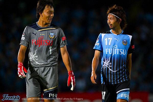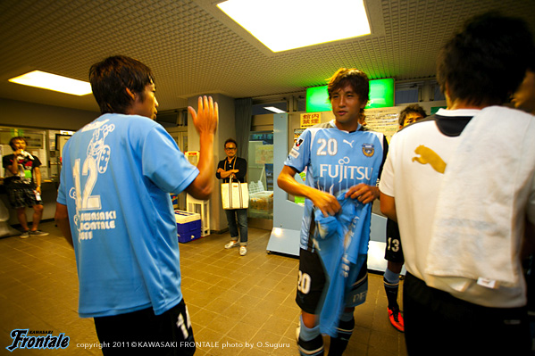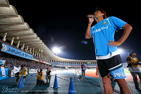 - 失点はディフェンスラインが上げ切れていない状況で、前に行ってしまったりというコミュニケーション不足の面があったのは否めない。多少中盤のスペースが空いた中で、下げるのか、上げるのかという判断が後手後手になってしまった部分はあると思う。2失点目にしてもボールの取られ方やリスク管理の部分で、暑さの中で集中力が切れてしまうという部分があると思う。この暑さの中で頑張ること、それこそ技術、戦術ではなくて、気持ちの部分で頑張るチームが夏場は勝ってくると思う。まだまだ気持ちの部分で頑張るところがあると思う。個人的には中盤で下がり過ぎたくないという気持ちがあった。相手の1トップに対して僕とコウセイが下がってしまうと、数的に4対1の関係になってしまうし、そういう状況だけは作りたくなかった。少し前目のポジションを取り過ぎてしまった場面もあったし、そういうときにディフェンスラインが上がるのか、僕らが下がるのか、もっとコミュニケーションを取ってやっていきたい。ゴールは、最初のトラップが良かったので、あとはコースを狙うだけだった。結果的にキーパーも少し前に出ていたのも良かった。キーパーの位置までは見えていなかったが、ファーストタッチで勝負は決まったという感じがする。あの得点が流れをよんだかなと思う。ホーム等々力でやっと得点が奪えて、サポーターには1年半も待たせてしまって申し訳ない気持ちだったが、やっとフロンターレの一員になれたかなと。ガッツポーズは清水戦の時もそうだが、今年はこれでいこうと思っていた。今はFWだけでなく誰でも点が取れることがチームにとって脅威だと思う。