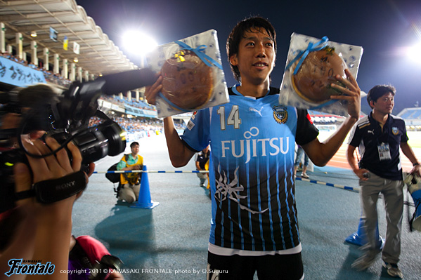 - フロンターレでJ1・200試合を達成することができた。あっという間だったが、周りの支えやサポーターの皆さんの声援があったからこそできたこと。これからも目の前の1試合に集中して積み重ねていきたい。