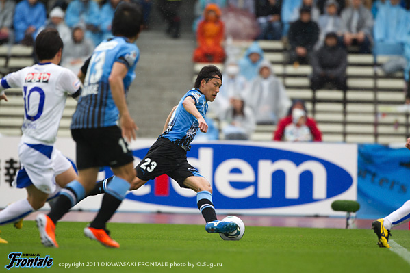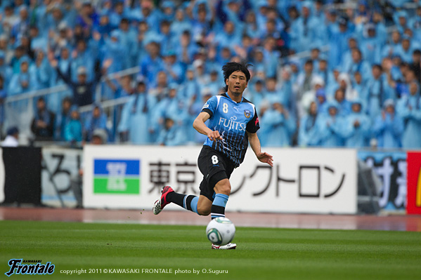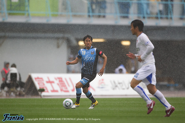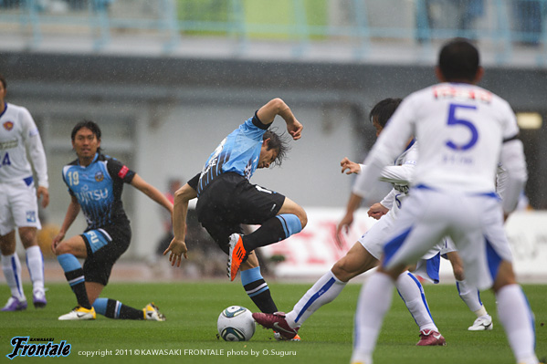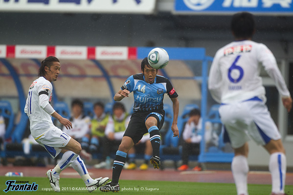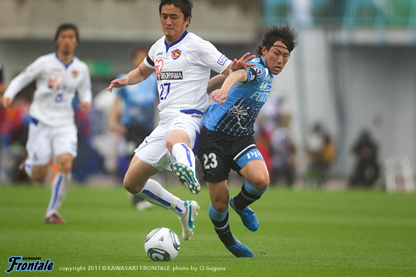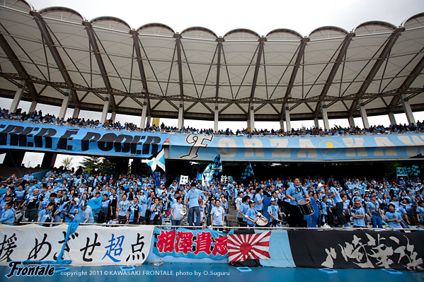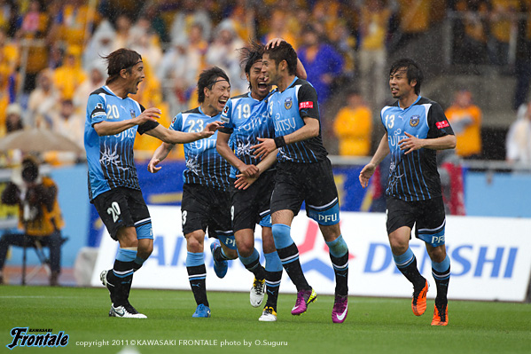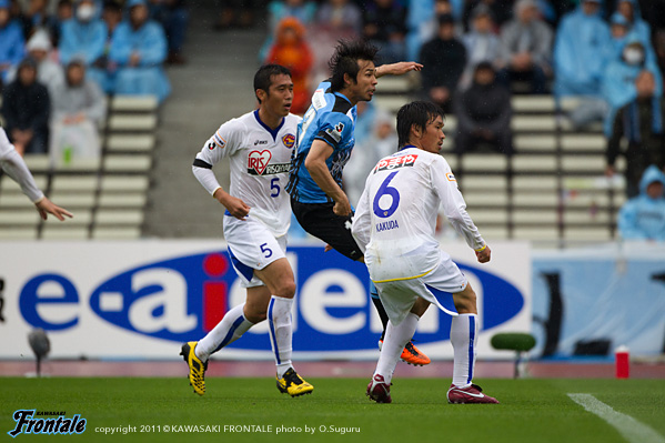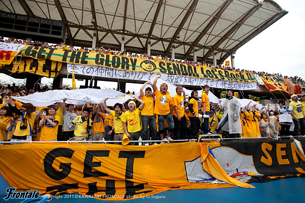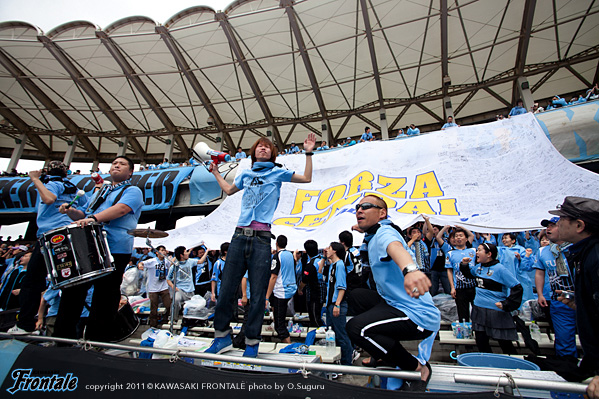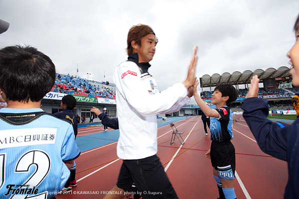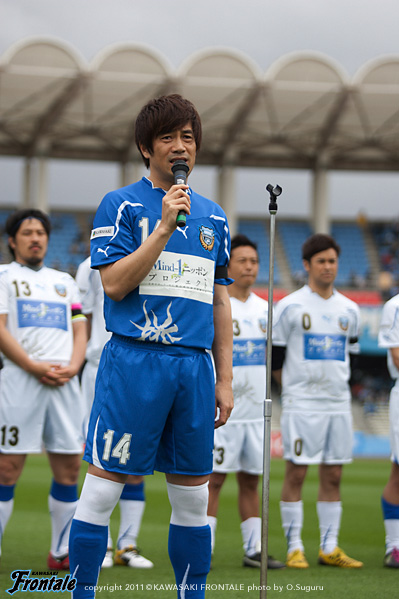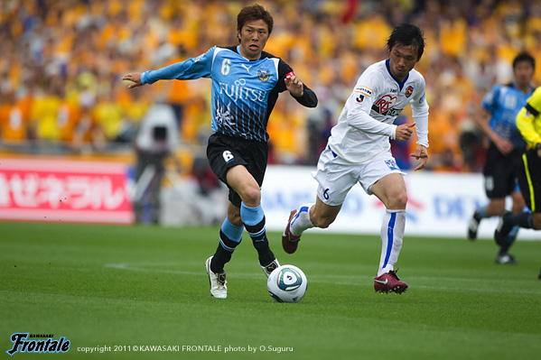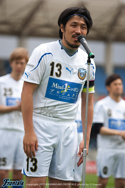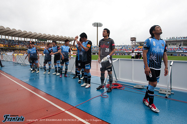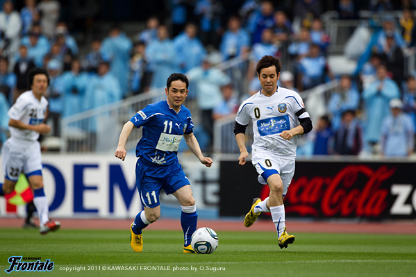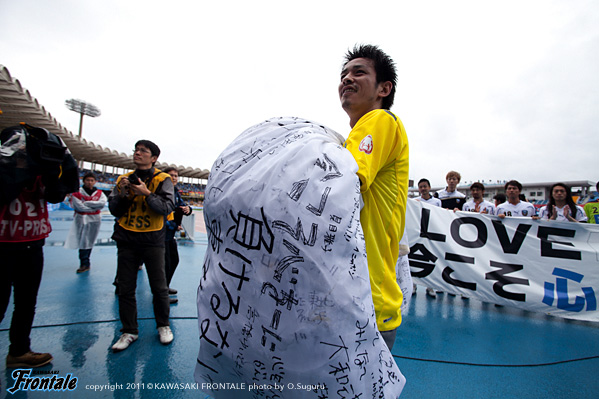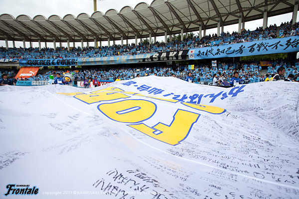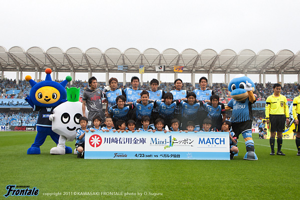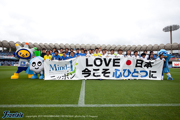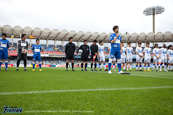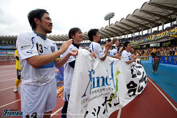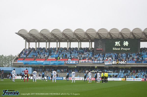 東日本大震災の影響により約1ヶ月半ほど中断されていたJリーグが再開。初戦の対戦相手は仙台。並々ならぬ決意で等々力に乗り込んできた相手に対し、自分たちの持てる力をすべて出し切ることができるか。ときおり強い雨が降り、強風が吹く等々力陸上競技場。14:04キックオフ。