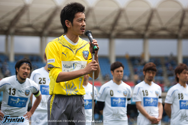 - ホント、試合が終わったときにうちのチームには、はっきり言って宮城県人が大久保、東北人の菅井とか数少ない中で、オレも青森県人の東北人で、ベガルタに居る選手が本当に東北のためにやってくれたという風に考えたらなんか涙が溢れてきたので。ホントにこういった勝利をね、でこういった戦い方を続ける事が本当に、一日でも早く東北が元気になればいいと思うし、自分たちがこうした戦いを一生懸命に続けてね、少しでもいい順位に付けられれば、そのシーズンが終わった頃の東北というのがね、限りなく進んでいると思うし、お互いにそういう事を常に意識した一年にしていきたいと思います。