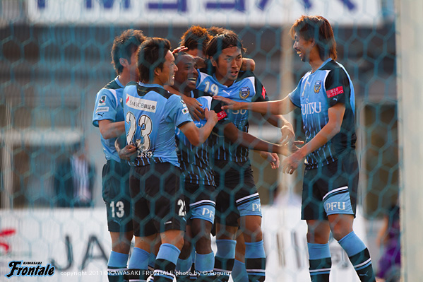 フロンターレのスターティングメンバーは、ジュニーニョと矢島の2トップ、中盤左に山瀬、右に登里、中村と柴崎のダブルボランチ、小宮山-菊地-井川-田中裕の最終ライン、GK相澤。3分、フロンターレの攻撃。中盤でボールカット。山瀬からボールを受けたジュニーニョが右サイドからクロスを入れるが、ボールはそのままゴールラインを割る。4分、左サイドの小宮山からスルーパス。ジュニーニョが左サイド深い位置に抜け出すが、クロスはDFにブロックされる。5分、右サイド田中裕のスローインを受けた矢島がボールを収め、右サイド深い位置からシュートを放つが惜しくもゴール右に外れる。6分、矢島のポストプレーからボールを受けたジュニーニョが右サイドから戻し、パスを受けた山瀬がシュートを放つが、これはGK正面。9分、柴崎を経由して左サイドへ展開。小宮山からボールを受けた登里がクロスを入れるが、このボールはDFにブロックされる。立ち上がりからフロンターレが攻勢をかけ迎えた10分、左サイドからのコーナーキック。中村のボールを菊地が競り合い、こぼれ球に詰めたジュニーニョがボールをしぶとく流し込み、先制点を挙げる(1-0) 12分、フロンターレの攻撃。中盤で柴崎がインターセプト。中村からボールを受けた矢島がミドルシュートを放つが、これはGK正面。13分、左サイドの登里がドリブル突破。スルーパスに走り込んだジュニーニョが深い位置から折り返しを入れるが、GKにキャッチされる。15分、相手陣内で中村がインターセプト。ラストパスを受けたジュニーニョがシュートを放つが、惜しくもGKにセーブされる。17分、スローインの流れからジュニーニョの戻しを受けた田中裕がグラウンダーのクロスを入れ、矢島がダイレクトで合わせるが惜しくもDFにブロックされる。19分、右コーナーキックのクリアボールを再び中村が入れ、登里が右足で狙うがシュートはGK正面。