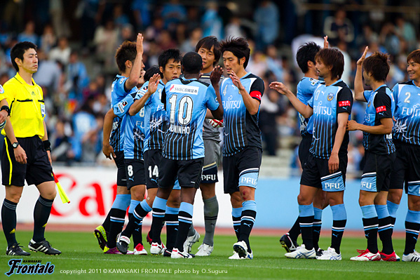 後半は鹿島のペースで試合が進んだが、途中出場の小林が貴重がゴールを決め、これが決勝点に。強敵鹿島から3ゴールを奪い、ホームで勝利を挙げた。