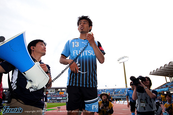 - 後半になって、押し込まれていた時間帯でピッチに立ったが、しっかり集中してできたと思う。今年は始まってから、自分はケガばかりでなかなかコンディションも上がらなかったが、久しぶりの等々力でこんなにお客さんにも来てもらえて、やっぱりいい雰囲気だな。最高だなとあらためて思った。いろいろ新しいことにチャレンジして、チームもこれからもっともっと良くなっていくと思うので、自分ももっともっとこれからコンディションを上げていきたい。