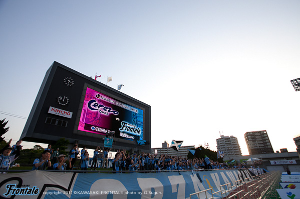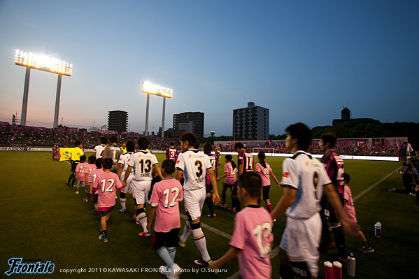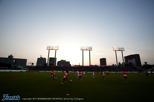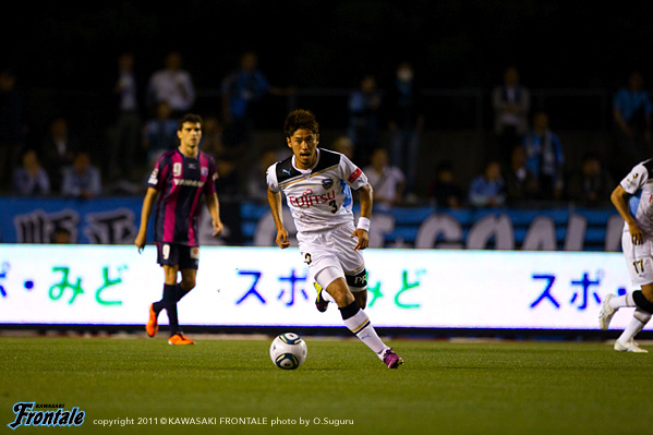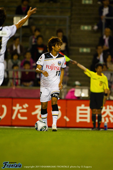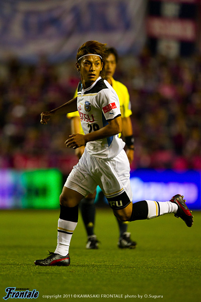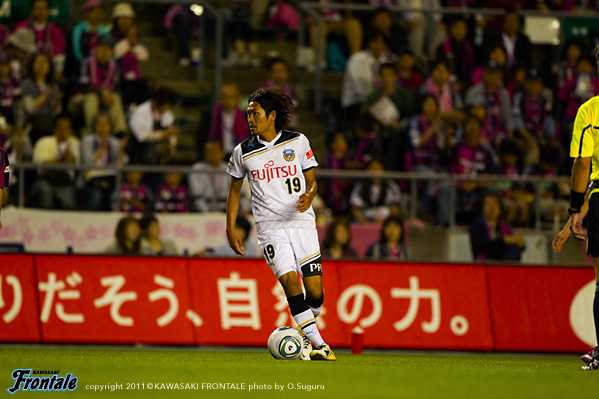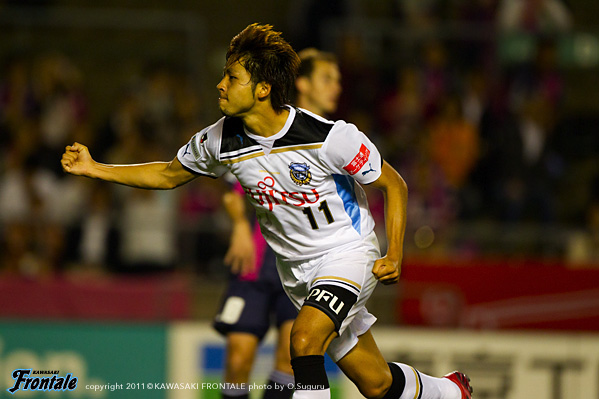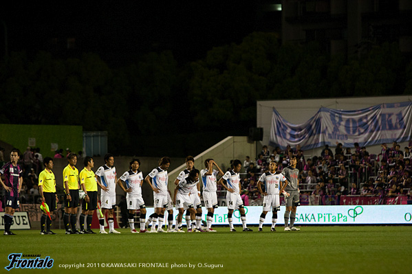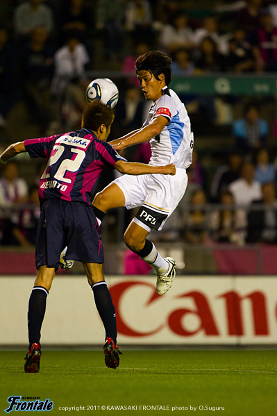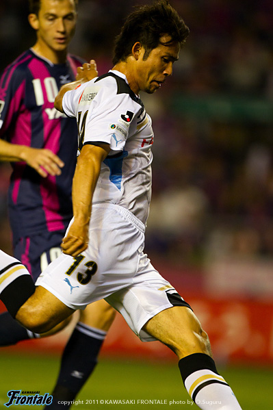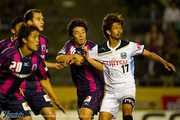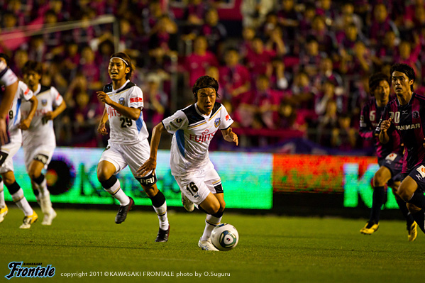 フロンターレのスターティングメンバーは、ジュニーニョと矢島の2トップ、中盤左に登里、右に山瀬、中村と柴崎のダブルボランチ、小宮山-菊地-井川-田中裕の最終ライン、GK相澤。2分、C大阪の攻撃。マルチネスに左サイドからドリブルをしかけられクロスを高橋に合わされるが、シュートは大きく外れる。3分、フロンターレの攻撃。矢島がボールカット。右サイドからの折り返しをジュニーニョが受けるが、ワンタッチでのラストパスは山瀬に通らず。5分、早いリスタートからボールをつないで柴崎がミドルシュートを放つが、これはGK正面。6分、C大阪の攻撃。左サイド丸橋からロングボールを入れられるが、走り込んだピンパォンには菊地が対応。9分、フロンターレの攻撃。小宮山からパスを受けた登里が左サイドからドリブル突破をしかけるがクロスに持ち込めず。11分、ジュニーニョから右サイドに展開。ドリブルをしかけた山瀬がシュートを放つが、惜しくもGKにセーブされる。さらに田中裕のロングスローからこぼれ球を山瀬がシュートに持ち込むが、これはうまくミートせず。12分、C大阪の攻撃。カウンターを狙われるが、ピンパォンには井川が対応。16分、ボールを奪われカウンターに持ち込まれるが、乾のシュートは中村が足を出し、こぼれ球に走り込んだ倉田はオフサイド。迎えた17分、左サイドで矢島とのパス交換から登里がクロス。ゴール前にフリーで走り込んでいた山瀬がヘッドですらし、GKの股間を抜くシュートを決める。(1-0) 19分、フロンターレの攻撃。カウンターから山瀬が前線へボールを出し、矢島が裏のスペースに走り込むがDFにクリアされる。