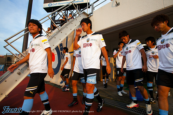 ハーフタイムのロッカールーム。「相手より走らないとダメだ。走っていたのは最初の10分だけだ。走れなければ申告するように。走り負けるな!」と相馬監督。「もう一回リセットして後半に入っていこう」と田中裕も声をかける。フロンターレは稲本に代わって中村がピッチへ。46分、フロンターレの攻撃。中村からの縦パスを矢島が受け、こぼれ球を山瀬が拾うがシュートには持ち込めず。50分、柴崎のロングボールからパスをつないでジュニーニョが左足でミドルシュートを放つが、ここはGKにセーブされる。51分、相手陣内でボールを奪い返してジュニーニョが右サイドから左足を振り抜くが、シュートはGK正面。53分、左サイドからジュニーニョがドリブル突破。クロスを入れるが矢島には合わず。さらにセカンドボールを拾って右サイドから田中裕が折り返しを入れるがDFにクリアされる。迎えた54分、高原の突破を止めた井川が2枚目のイエローカードを受けて退場処分に。フロンターレは10人での戦いを強いられる。56分、清水の攻撃。中盤左からのフリーキック。大前のボールはGK相澤がキャッチ。57分、田坂に代えて横山が入りセンターバックへ。59分、フロンターレの攻撃。中村が中盤でボールカット。矢島にボールを送るが、ここはファールで止められる。59分、右サイドからのフリーキック。中村がボールを入れるがGKにキャッチされる。60分、清水の攻撃。右サイド辻尾の突破は小宮山が対応。61分、フロンターレの攻撃。矢島のポストプレーからジュニーニョが左サイドに回り込みシュートを放つが、GKにキャッチされる。62分、中村のインターセプトからカウンターを狙うが、ジュニーニョはファールで止められる。64分、右サイドから勝負をしかけたジュニーニョがクロスを入れるが、矢島の前でDFにクリアされる。