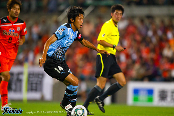 - 連戦、日本平での試合。多少疲れもあったが、最初から勢いを出していこうと思っていた。フロンターレにきて初めてゴールを取れたことはうれしい。でも1失点目は自分のマークだったし、ハーフタイムで交替している。個人的なパフォーマンスは納得していない。点を取ったあとの集中力という部分で受けてしまった感があるので、そこは反省しなければ。ただ10人になってから交替した選手たちを含めてみんなが結果を出してくれた。チーム力が上がっている証拠だし、この勢いを次の鹿島戦につなげていきたい。