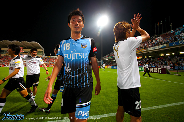 平日のナイターでしたが、けっして川崎から近くないのですが、たくさんのサポーターの皆さんに来ていただきました。その中でホントに苦しいゲームになったのですが、勝つことができた。サポーターの方々の後押しが非常に大きかったなと思います。ホントに感謝しています。僕らもそうですがサポーターの皆さんに帰りのいい時間をプレゼントできたかなと思います。以上です。