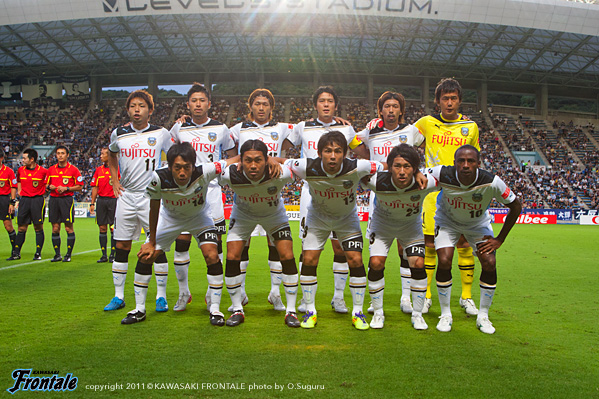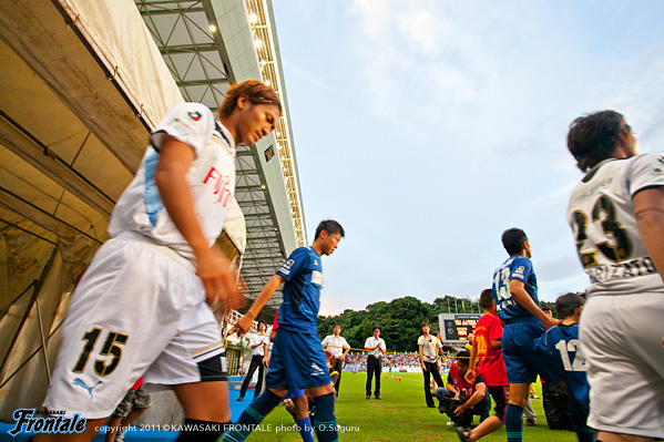 フロンターレのスターティングメンバーは、ジュニーニョと小林の2トップ、中盤右に山瀬、左に登里、中村と柴崎のダブルボランチ、實藤-菊地-井川-田中裕の最終ライン、GK相澤。お互いに様子見の立ち上がり。5分、フロンターレの攻撃。柴崎が中盤でインターセプト。ボールを受けた小林がスルーパスを送るが、山瀬には通らず。さらに自陣からつないで田中裕が右サイドから低いボールを前線へ。ゴール前で山瀬がこぼしたボールにジュニーニョが詰めるが、フィニッシュにはつながらず。6分、ボールをつないで押し込み、實藤が左サイドから折り返し。ジュニーニョがスルーするが、背後の登里には通らず。7分、直後にカウンターを受けるが、岡本には井川が対応。8分、フロンターレの攻撃。福岡の攻勢をしのいで反撃に移り、中村が左サイドに展開するが實藤は惜しくもオフサイド。12分、相手陣内で山瀬がボールカットするが、ジュニーニョのスルーパスは登里にはタイミングが合わず。14分、福岡の攻撃。鈴木にロングボールを入れられるがGK相澤がキャッチ。15分、フロンターレの攻撃。中盤でボールカット。中村がスルーパスを送るが、走り込んだ小林はオフサイド。16分、カウンターから田中裕がスルーパス。抜け出したジュニーニョが右サイドから決定的な折り返しを入れるが、GKにキャッチされる。18分、福岡の攻撃。ボールをつながれ縦パスがゴール前へ。ここに城後が走り込むが井川が対応。21分、ボールをつないで押し込むがラストパスにつなげず。22分、福岡の決定機。岡本の右サイドからの折り返しが流れ、ファーサイドの松浦にシュートを打たれるが、これはポストに当たって外れる。その後もセカンドボールを拾われゴール前に押し込まれるが、ぎりぎりのところでクリア。23分、フロンターレの攻撃。ボールを奪って中村が右サイドからクロスを入れられるがクリアされる。さらにコーナーキックからつないで最後は實藤がシュートを放つが、ゴール左に外れる。24分、フロンターレの攻撃。登里がドリブルで左サイド突破を狙うが、ここはファールで止められる。