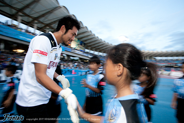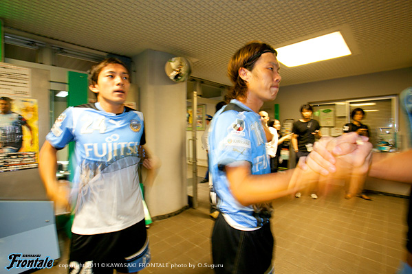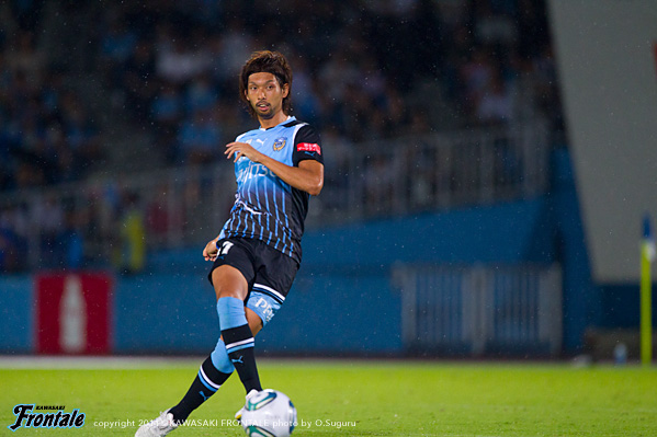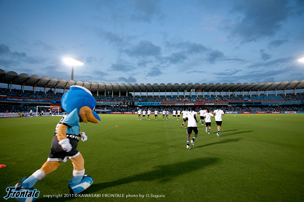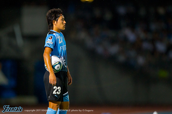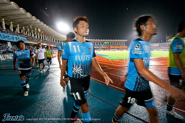 第23節名古屋戦。リーグ戦5連敗中と苦しいチーム状況が続くが、ホーム等々力でこの悪い流れを打破したい。ときおり激しい雨が降る不安定な天候の等々力陸上競技場。19:03キックオフ。