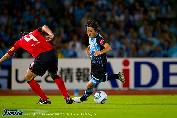 - 過去も含めてですが、川崎フロンターレさんとやるときは難しいゲームを強いられます。そういう意味ではジュニーニョと山瀬はとても危険な選手で我々がやられるという危惧もありました。そういう部分で90分、総じて我々の守備はよかったと思います。ある程度遅れたり、見込み違いのプレーもありましたが、90分間総じて、とても良かったと思います。フロンターレさんはいい選手がいますからね。それに対してしっかり止めなければならなかったということです。守備的にも我々はしっかり対応しなければならなかった。特にジュニーニョの侵入ですね。左サイドからやってきて、危険な選手で決定力もあります。山瀬に関しては遠くから打ってきますから、いいキッカーですから、そこも防がなければなりませんでした。ある部分、走り勝った部分もありますしアジリティのところで我々が一歩先にでたところもありました。1-0で先制されたわけですが、そこから我々のプレーが重要なものを求められることになりました。メンタル的に試された試合でもありましたし、そこは逆転して勝つことができました。難しい状況ですよね。追いついて勝つというのは。そこは我々がしっかりやったということで、精神力がある。メンタル面のところで強いという事を再確認できました。この前の仙台戦というものは負けていますから、ああいうサプライズに対して今度は起こさせないという強いリアクションというものが選手から今日は見られたと思います。